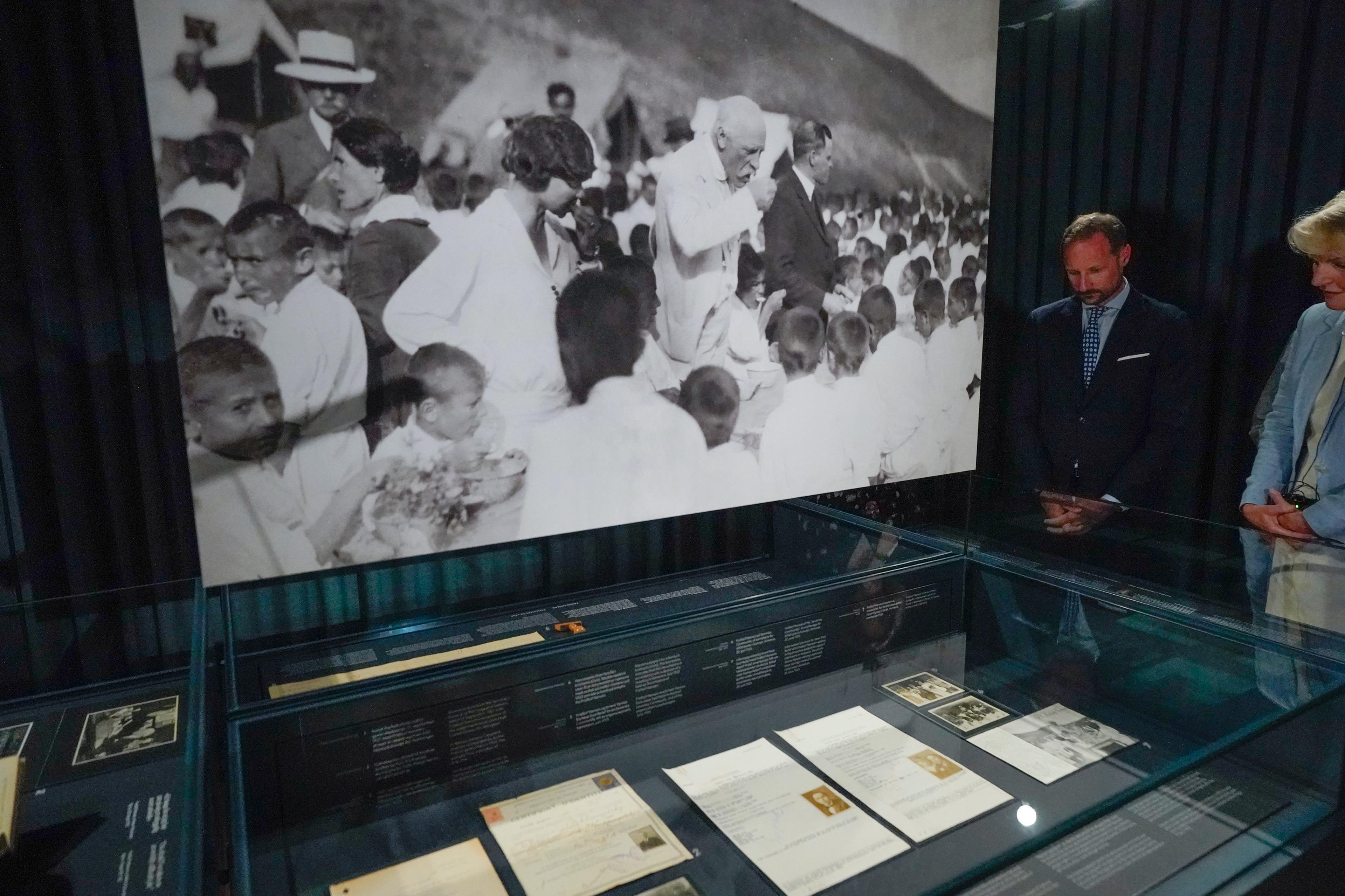 Kronprinsen ble vist rundt i utstillingen av utstillingssjef Nina Frang Høyum og direktør Kjersti Fløgstad ved Nobels Fredssenter. Utstillingen rommer originaldokumenter og bilder, blant annet Nansens egne. Nansen var en av de første som brukte fotografier for å skape sympati og skaffe penger til folk i nød.