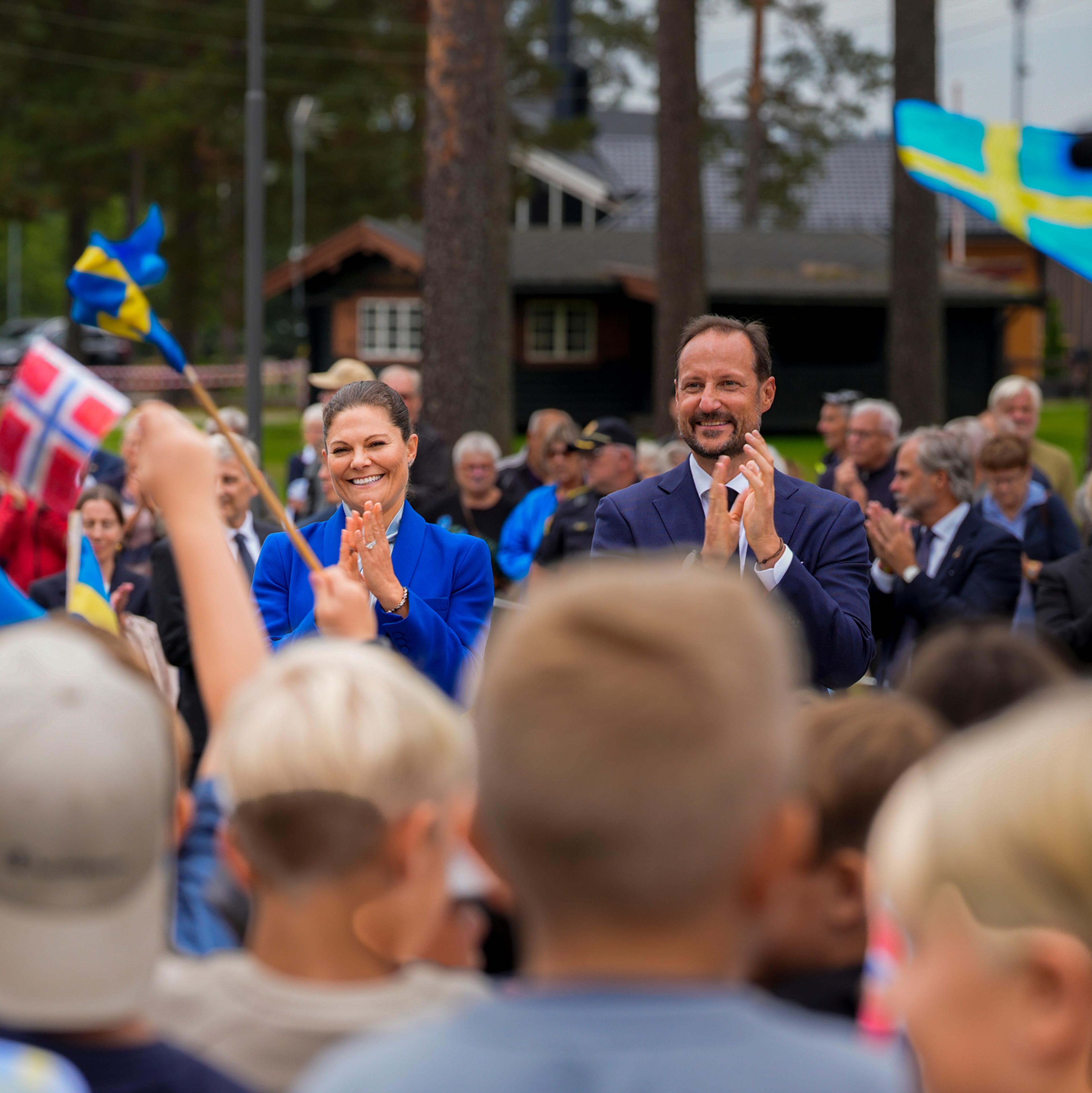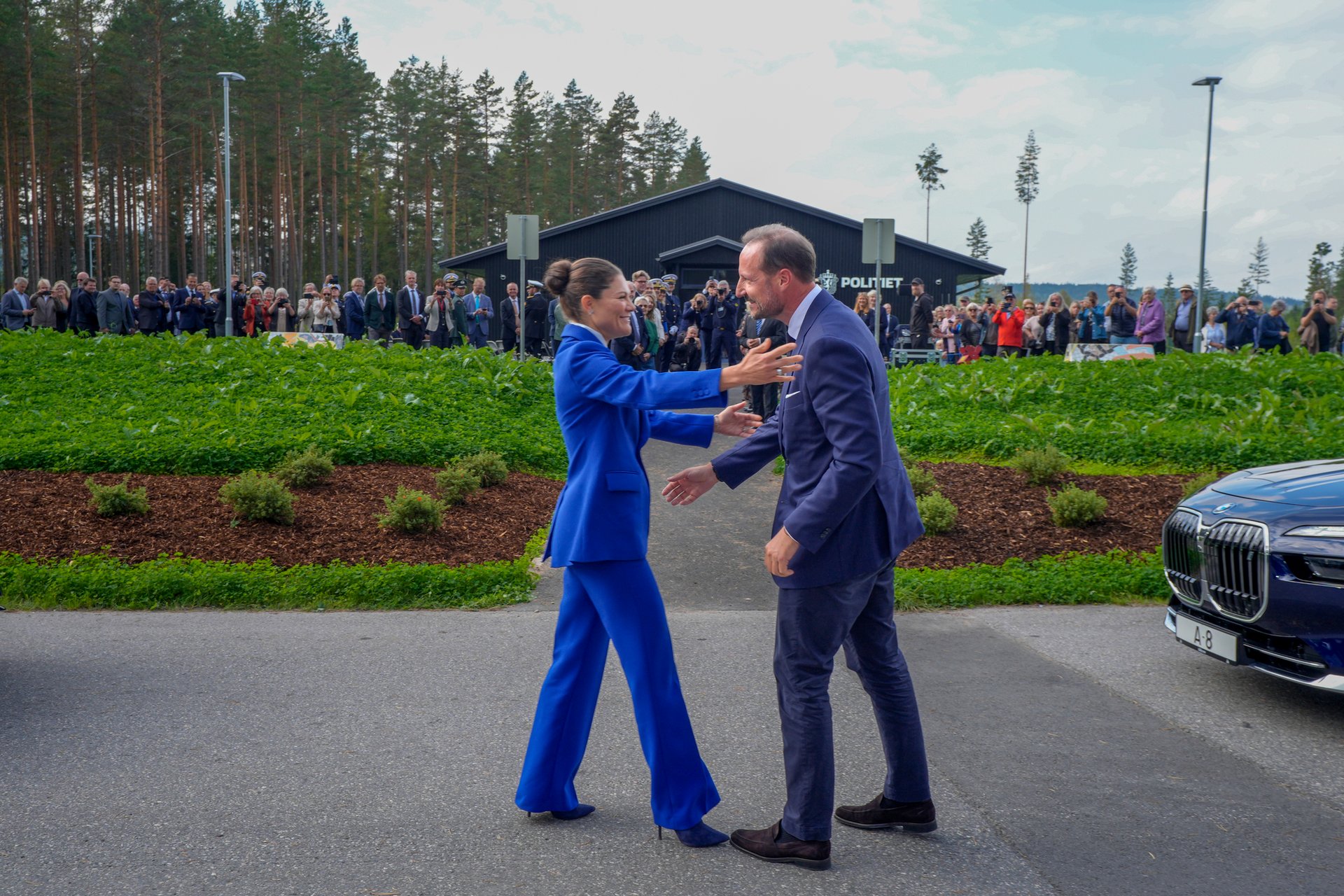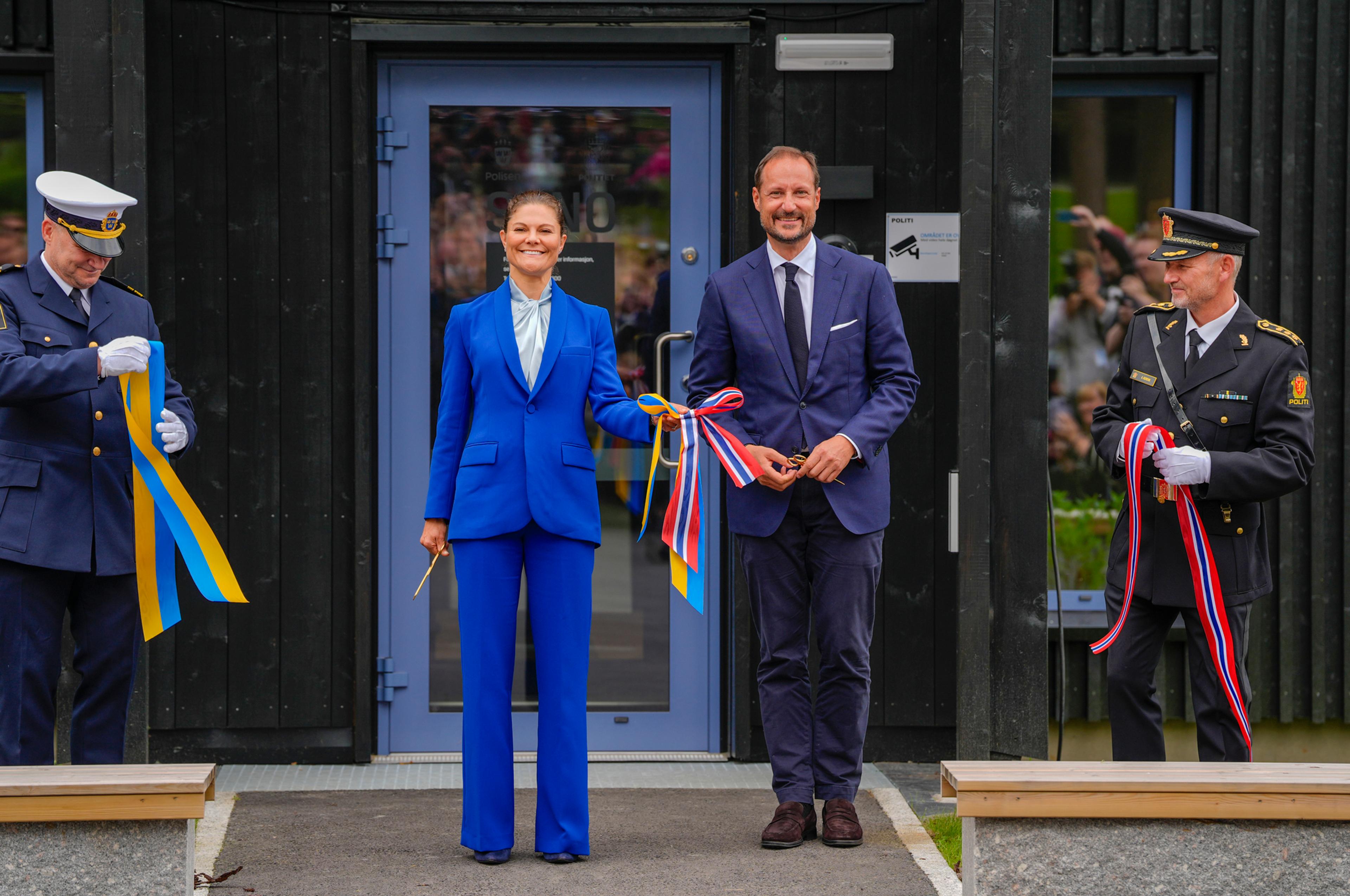 Hans Kongelige Høyhet Kronprinsen og Kronprinsesse Victoria av Sverige møttes på riksgrensen mellom Norge og Sverige for å innvie en ny felles norsk-svensk politistasjon.