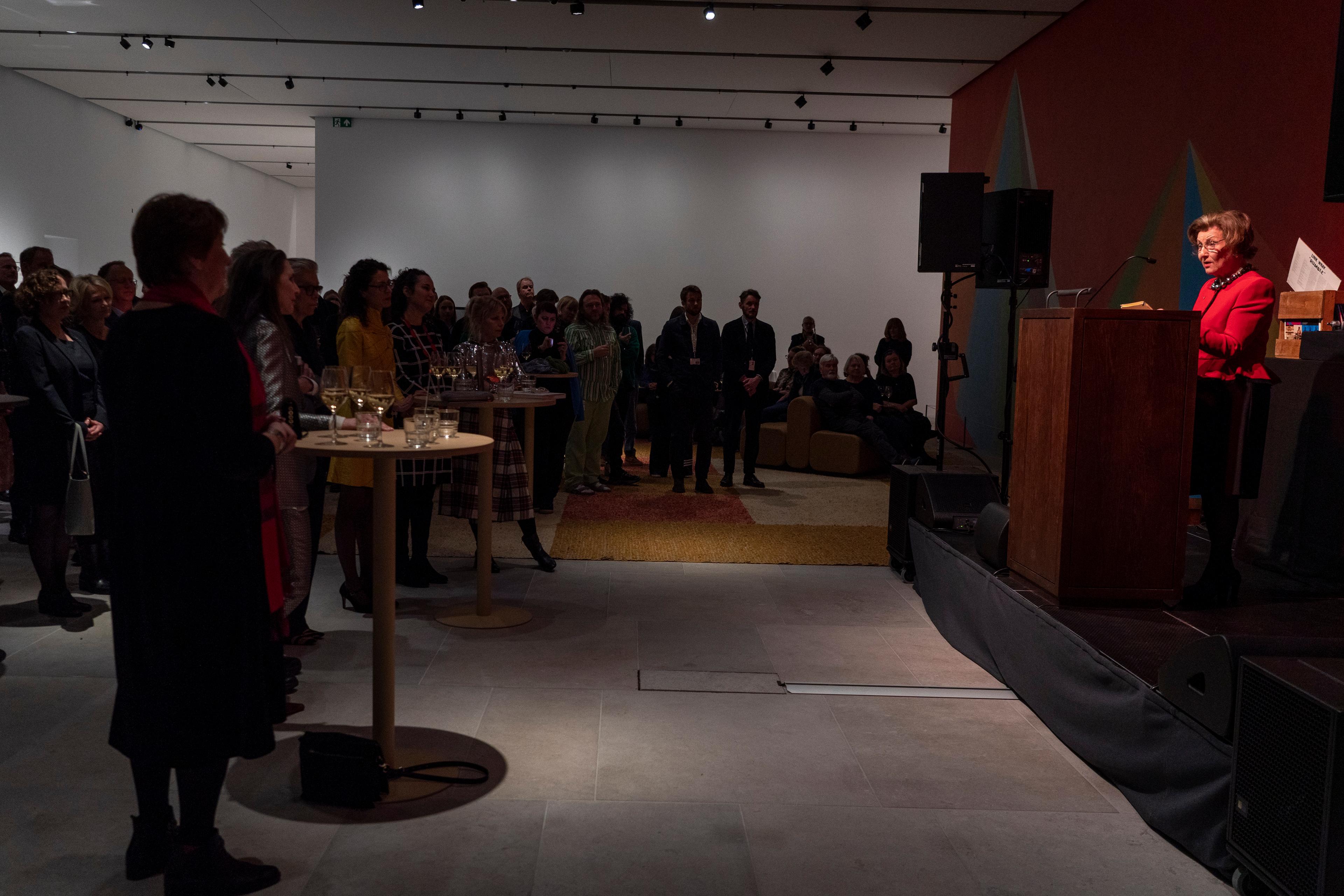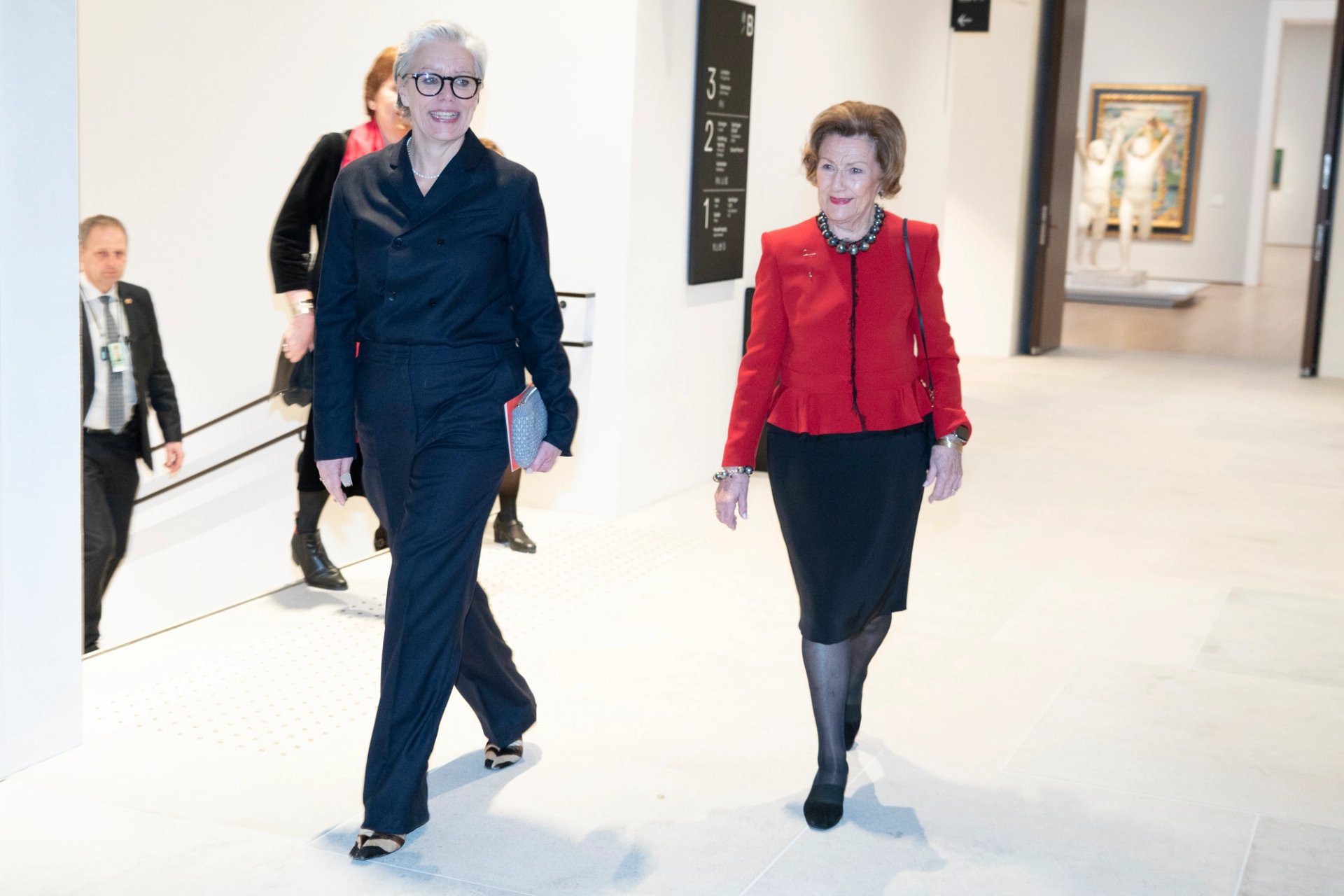 Under åpningen fikk Dronningen en omvisning i utstillingen sammen med kunstneren, Nasjonalmuseets styreleder Maria Moræus Hanssen, kurator Wenche Volle, prosjektleder Mari Aarre og ordfører i Oslo Marianne Borgen.