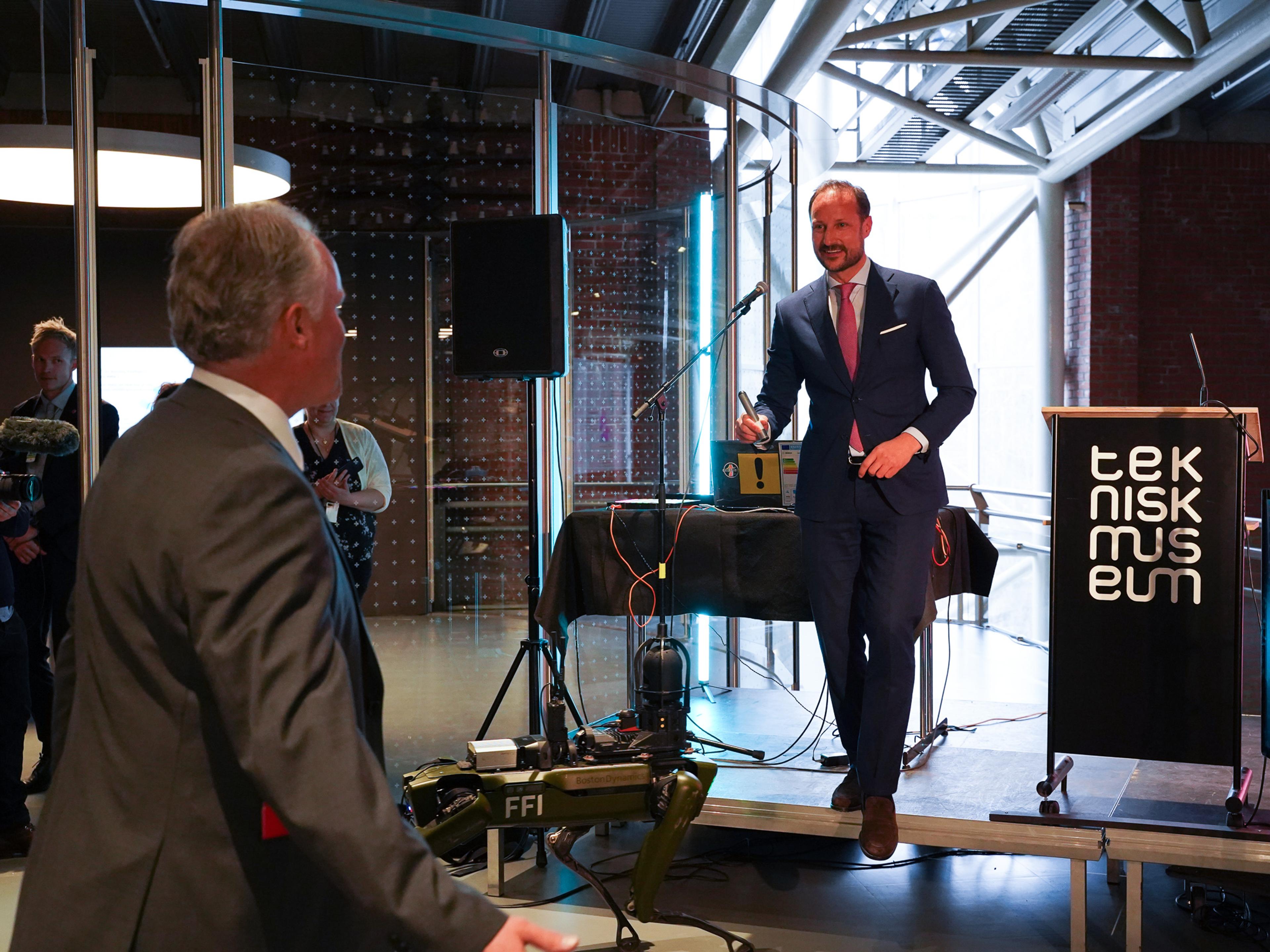 Det ble ingen tradisjonell snorklipping. Robothunden Freke kom bærende på en avatarpinne som Kronprins Haakon plugget inn ved en skjerm.