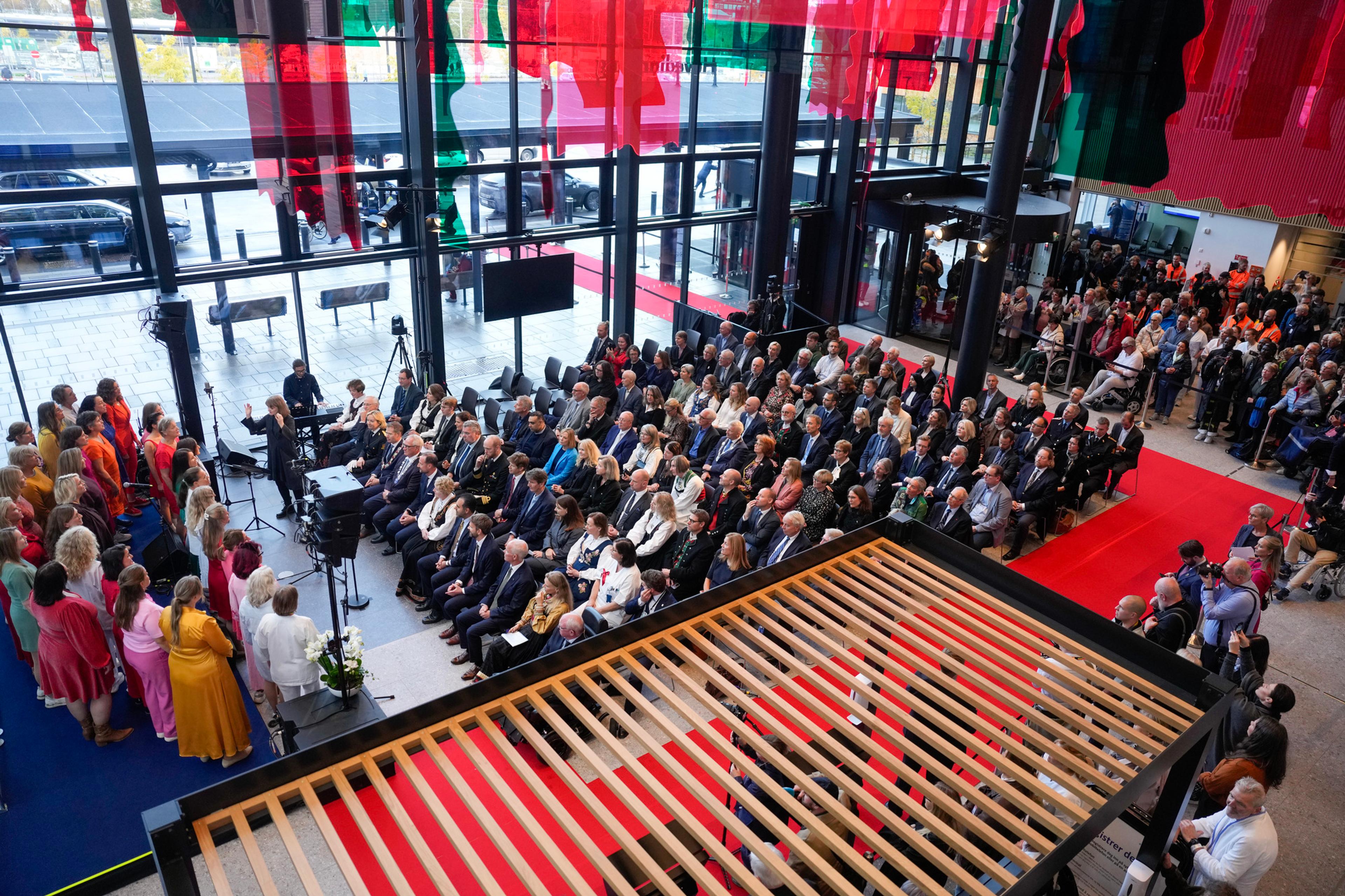 I foajeen på sykehuset var det duket for et offisielt åpningsarrangement. Det ble holdt taler, blant annet ved helse- og omsorgsminister Jan Christian Vestre og administrerende direktør Lisbeth Sommervoll. Koriander damekor, med flere ansatte fra sykehuset, opptrådte med flere sanger.