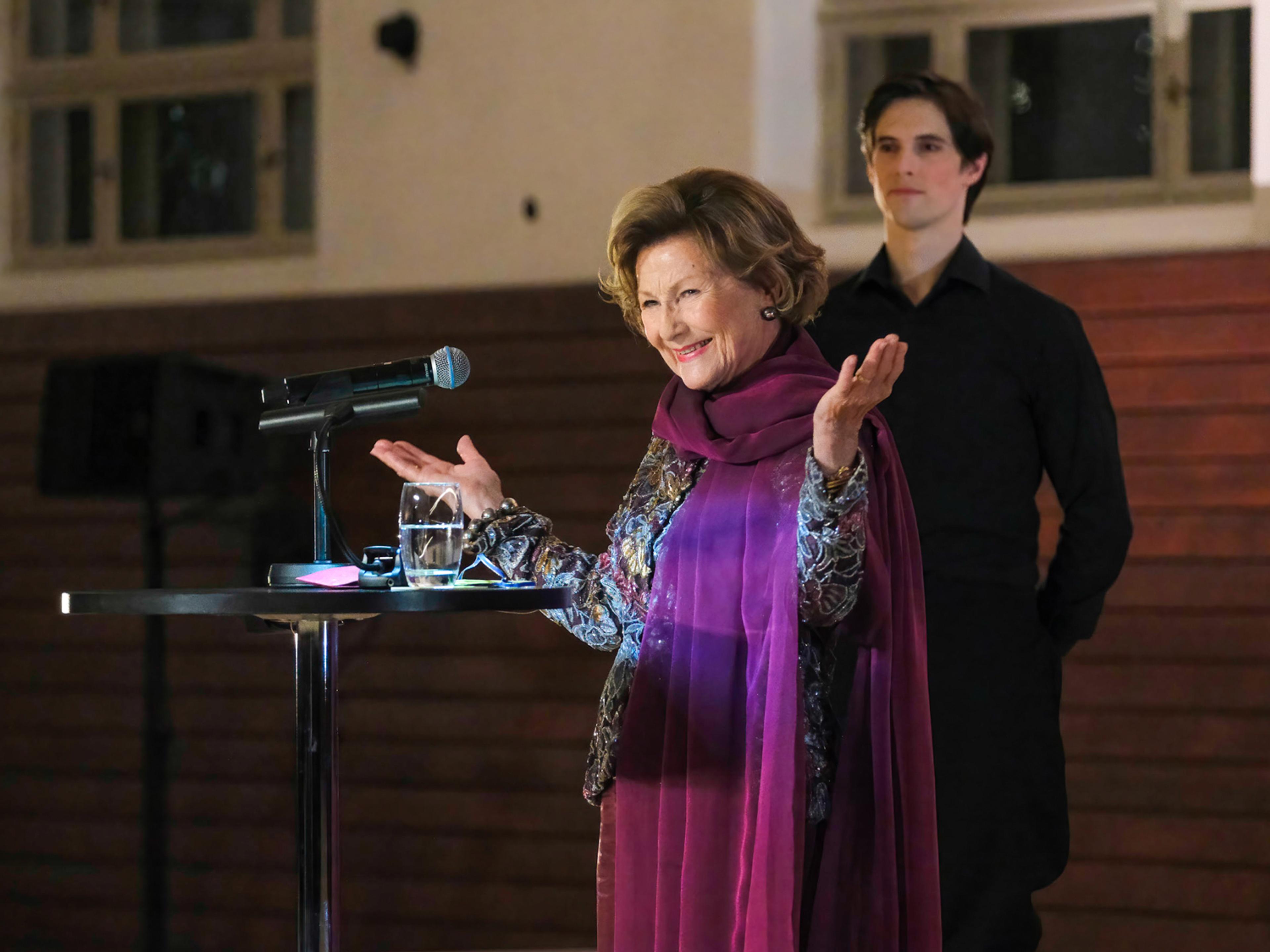 – Jeg liker å se for meg at hun sitter der nå – og smiler over å se at hennes kjære ridehus igjen er tatt i bruk her i aften, sa Dronning Sonja i åpningstalen sin. – Om enn ikke med levende dyr så er det fylt med mennesker, liv og opplevelser!