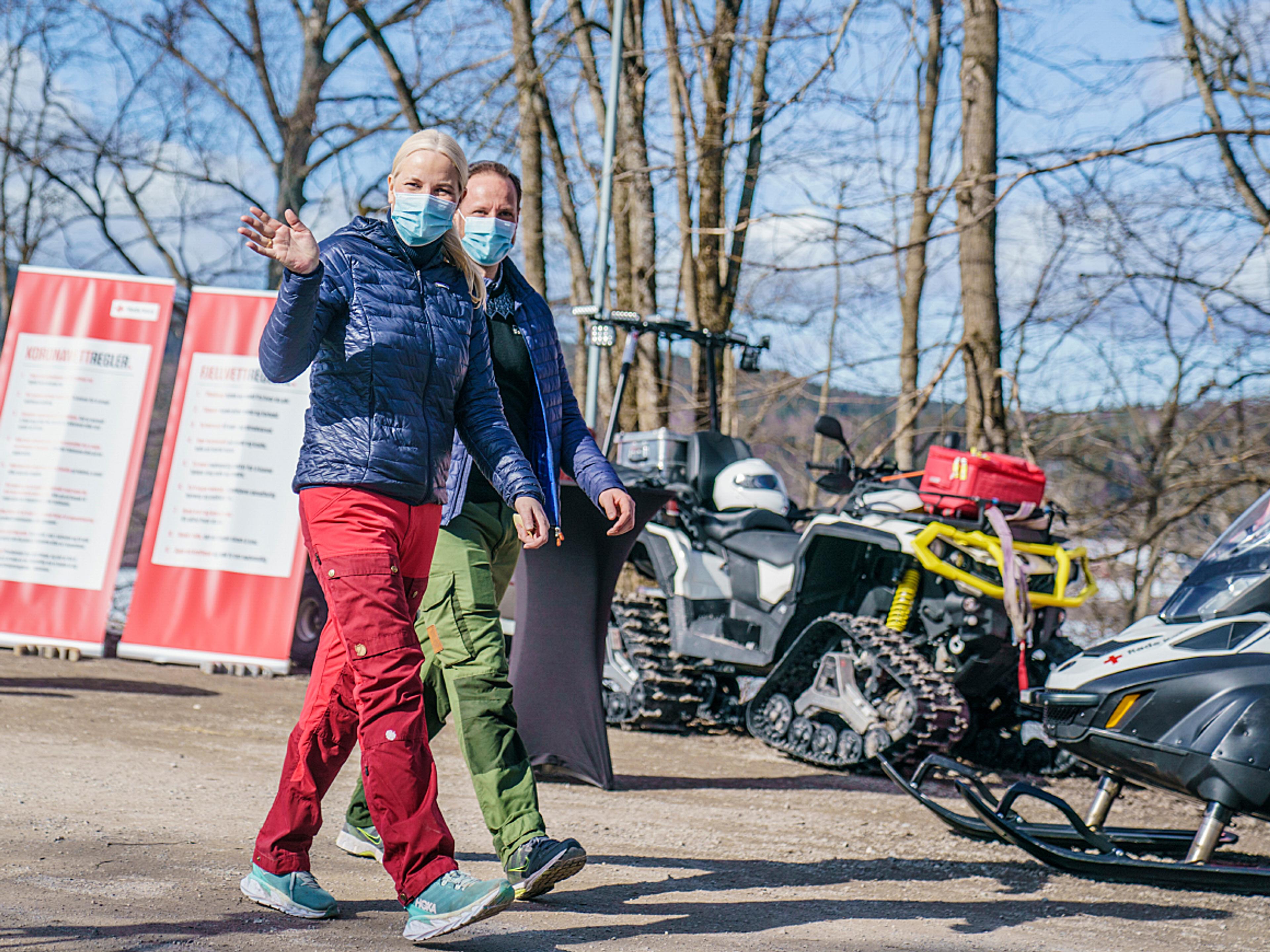 Ved Semsvannet fikk Kronprins Haakon og Kronprinsesse Mette-Marit se noe av utstyret hjelpekorpsene har til rådighet i beredskapstjenesten, som ATV, snøscooter og ambulanse. Lederen i Asker Røde Kors Hjelpekorps, Ellinor Møller, orienterte om årets påskeberedskap på vegne av de frivillige. Hun kunne også svare på Kronprinsparets spørsmål om aktiviteter og hva som behøves for å bli med i hjelpekorpsene.