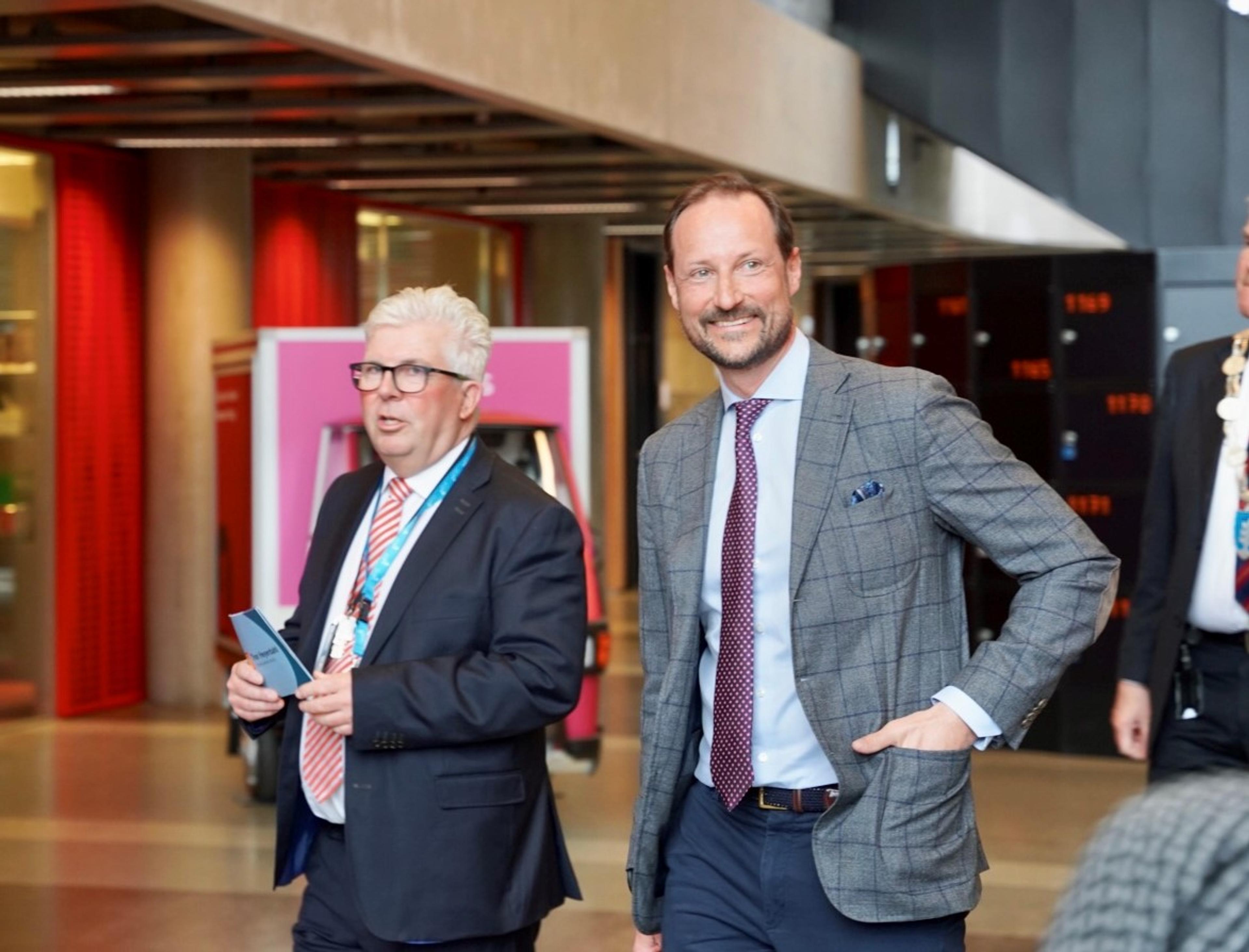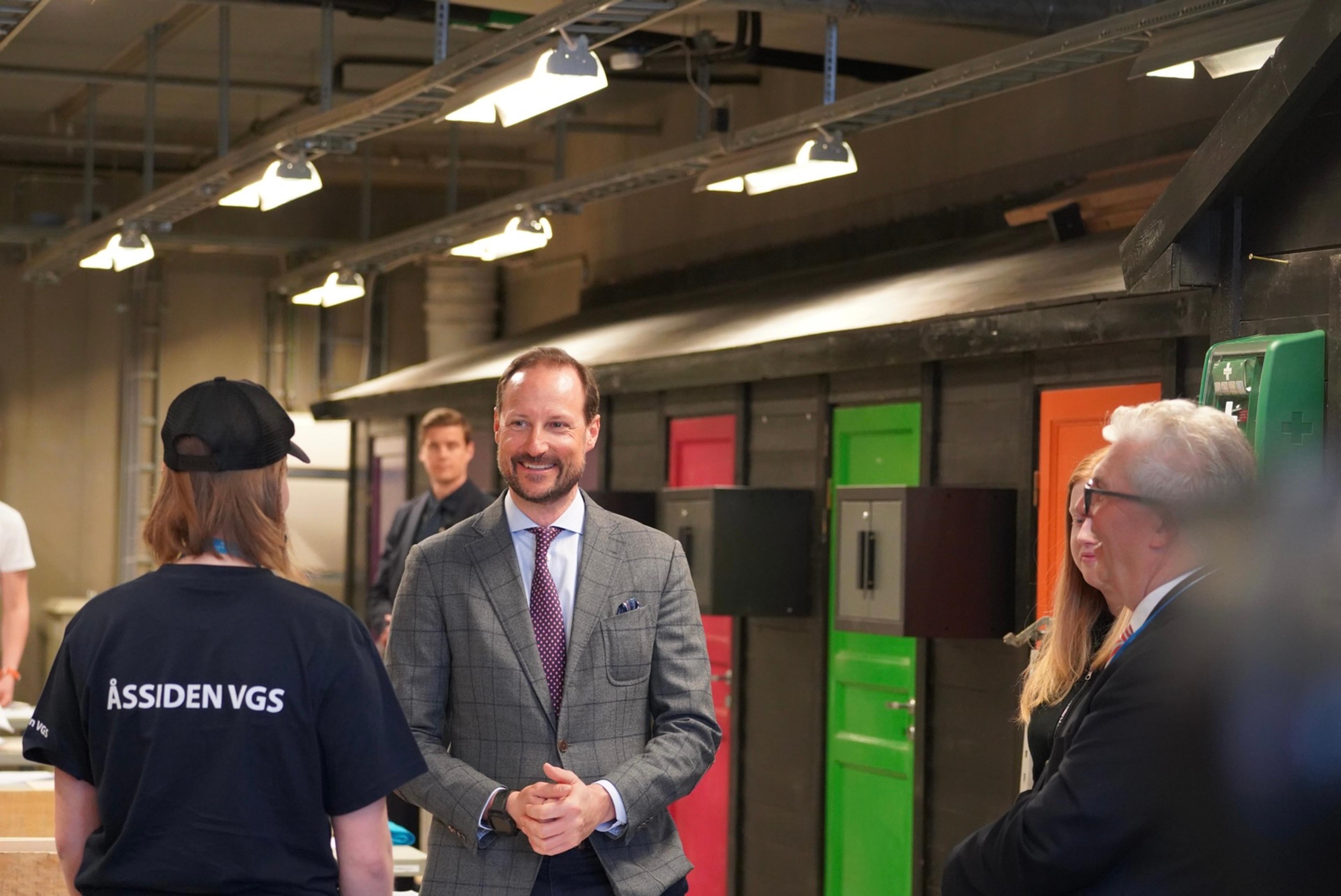 Hans Kongelige Høyhet Kronprinsen besøkte i dag Thor Heyerdahl videregående skole i Larvik. Skolen arrangerer denne uken skole-NM i snekkerfaget.