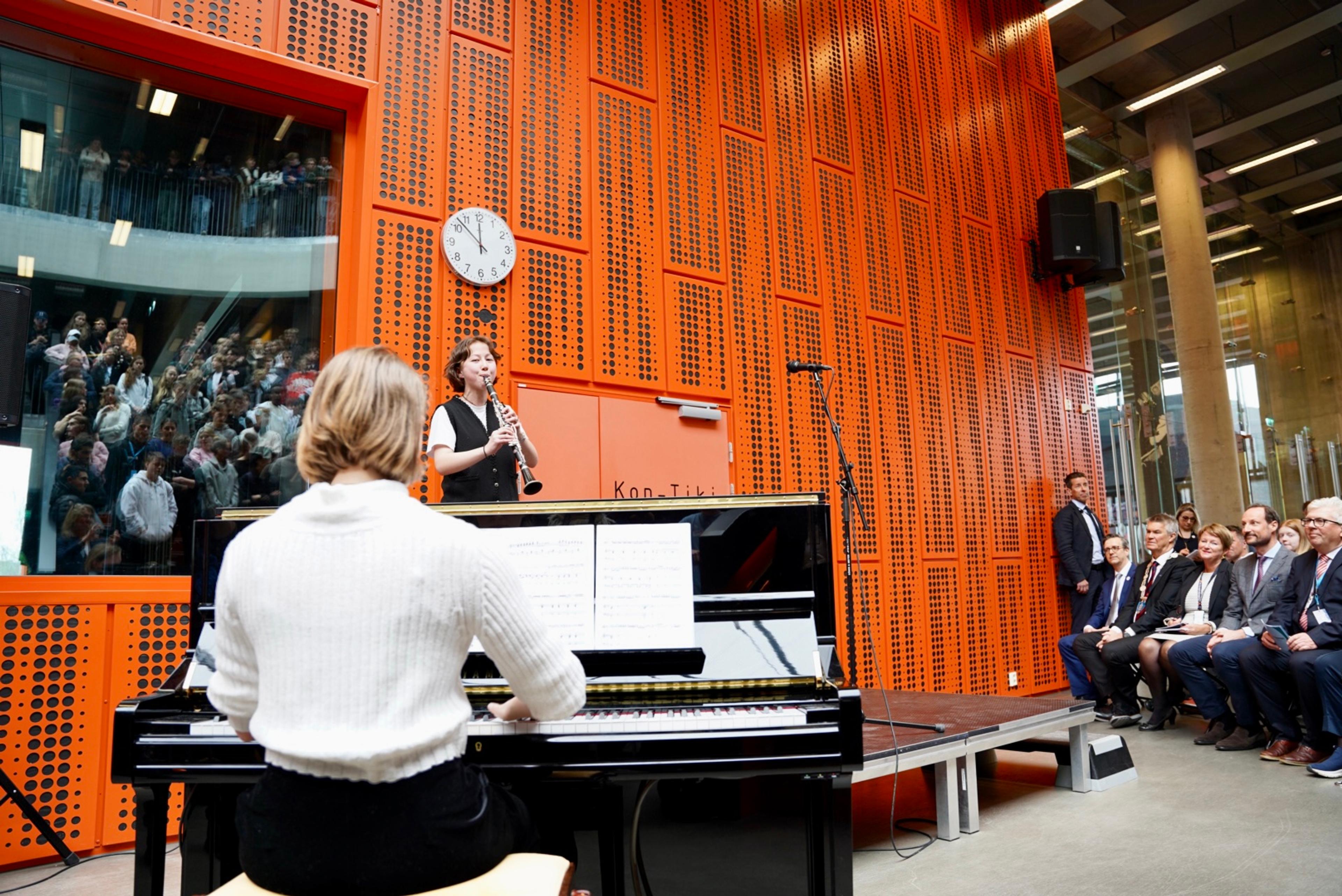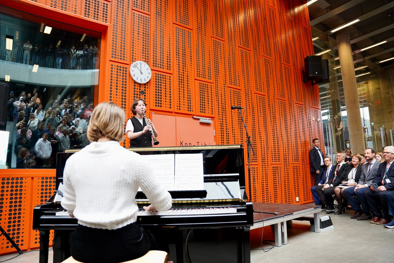 Avdelingsleder Jan Christiansen ønsket velkommen før rektor Lin Marie Holvik talte til de mange fremmøte elevene. Elever fra musikklinjen opptrådte med musikalsk innslag, før det ble avholdt edsavleggelse ved både deltager og dommer i årets Skole-NM.