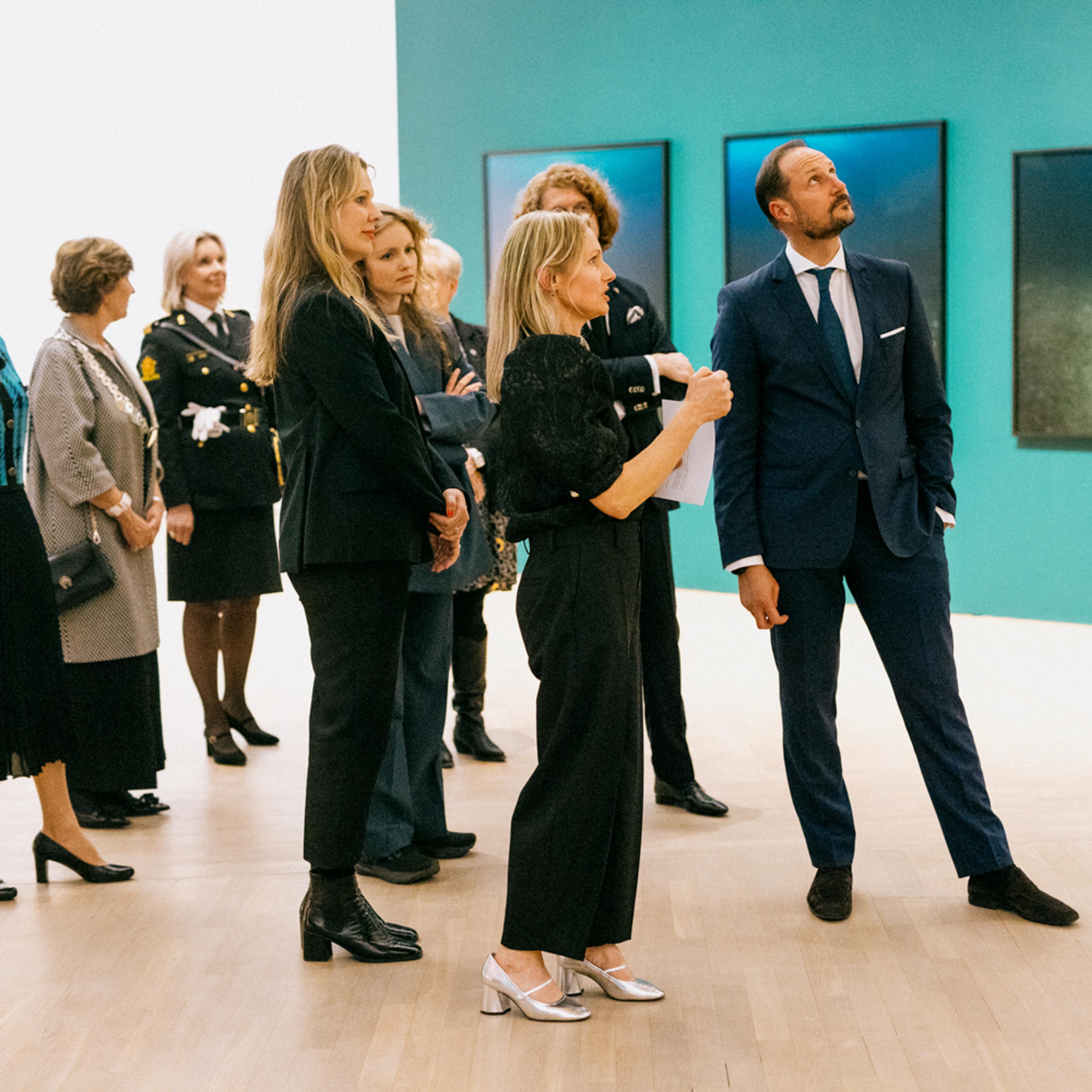 Etter den offisielle åpningen fikk Kronprins Haakon en omvisning i utstillingen sammen med assisterende statsforvalter, Ingvild Aleksandersen, ordfører Lisbeth Hammer Krog, politimester Ida Melbo Øystese, styreleder Marianne Blystad, direktør Anne Hilde Neset og kuratorene. Kunstnerne Fin Serck-Hanssen, Eline Mugaas og David Zink Yi presenterte sine kunstverk underveis i omvisningen.