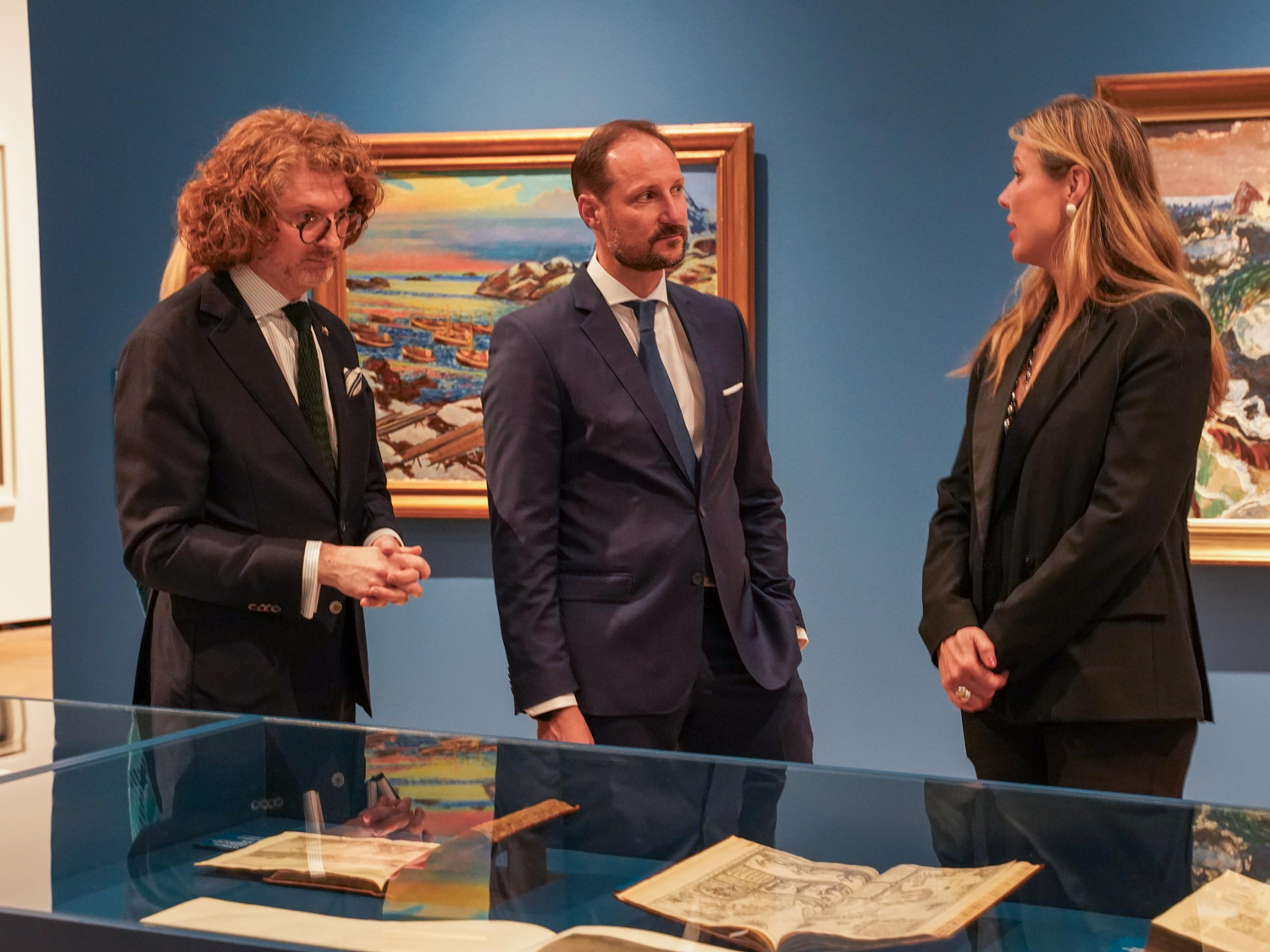 Hans Kongelige Høyhet Kronprins Haakon var til stede under åpningen av utstillingen «Atlanterhavet – Myter, kunst, vitenskap» på Henie Onstad Kunstsenter på Høvikodden i Bærum.