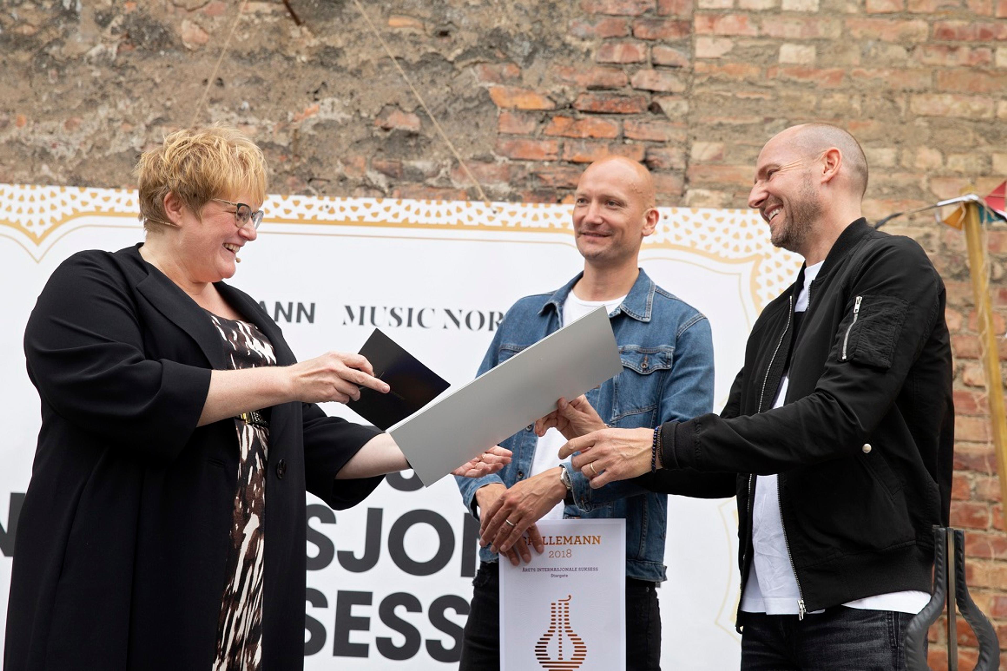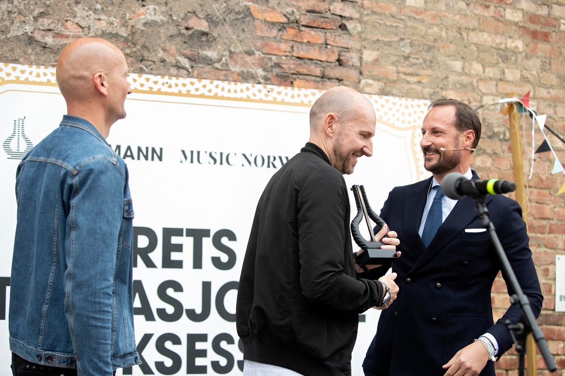 Hans Kongelige Høyhet Kronprinsregenten overrakte prisen til Årets internasjonale suksess under Music Norways utdeling i Prindsen hage i Oslo i dag. Prisen gikk til musikkproduksjons- og låtskriverduoen Stargate.