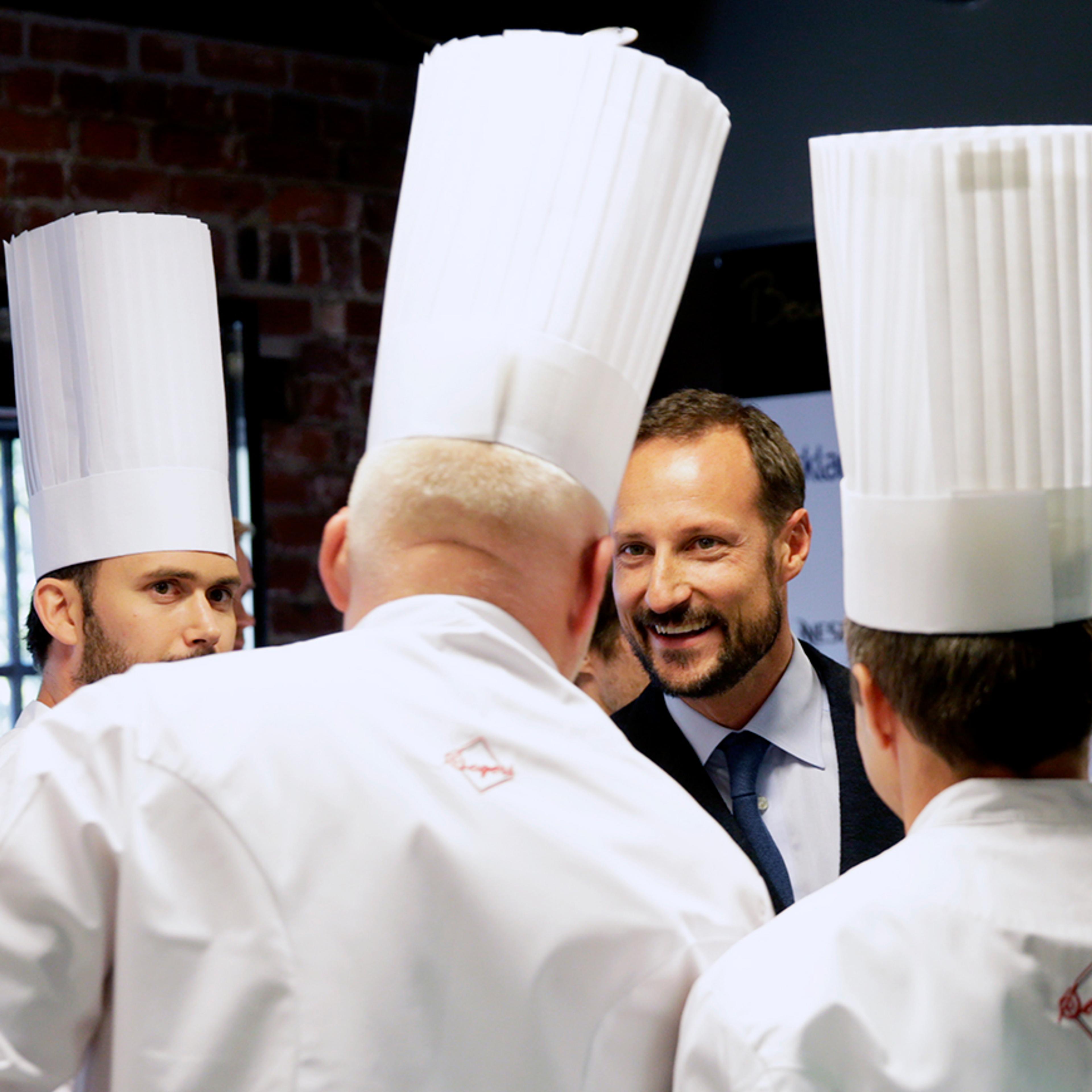 Årets kokk kåres på Mathallen i Oslo i dag. H.K.H. Kronprinsen besøkte kandidatene, som har vært i full sving siden klokken 10.00.
