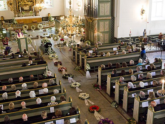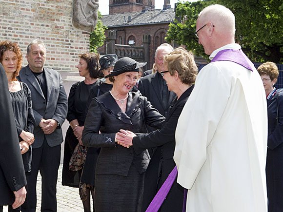 Hennes Majestet Dronningen var til stede onsdag da samtidskomponisten Arne Nordheim ble bisatt fra Oslo Domkirke. Nordheim døde lørdag 5. juni og ble 78 år gammel.
