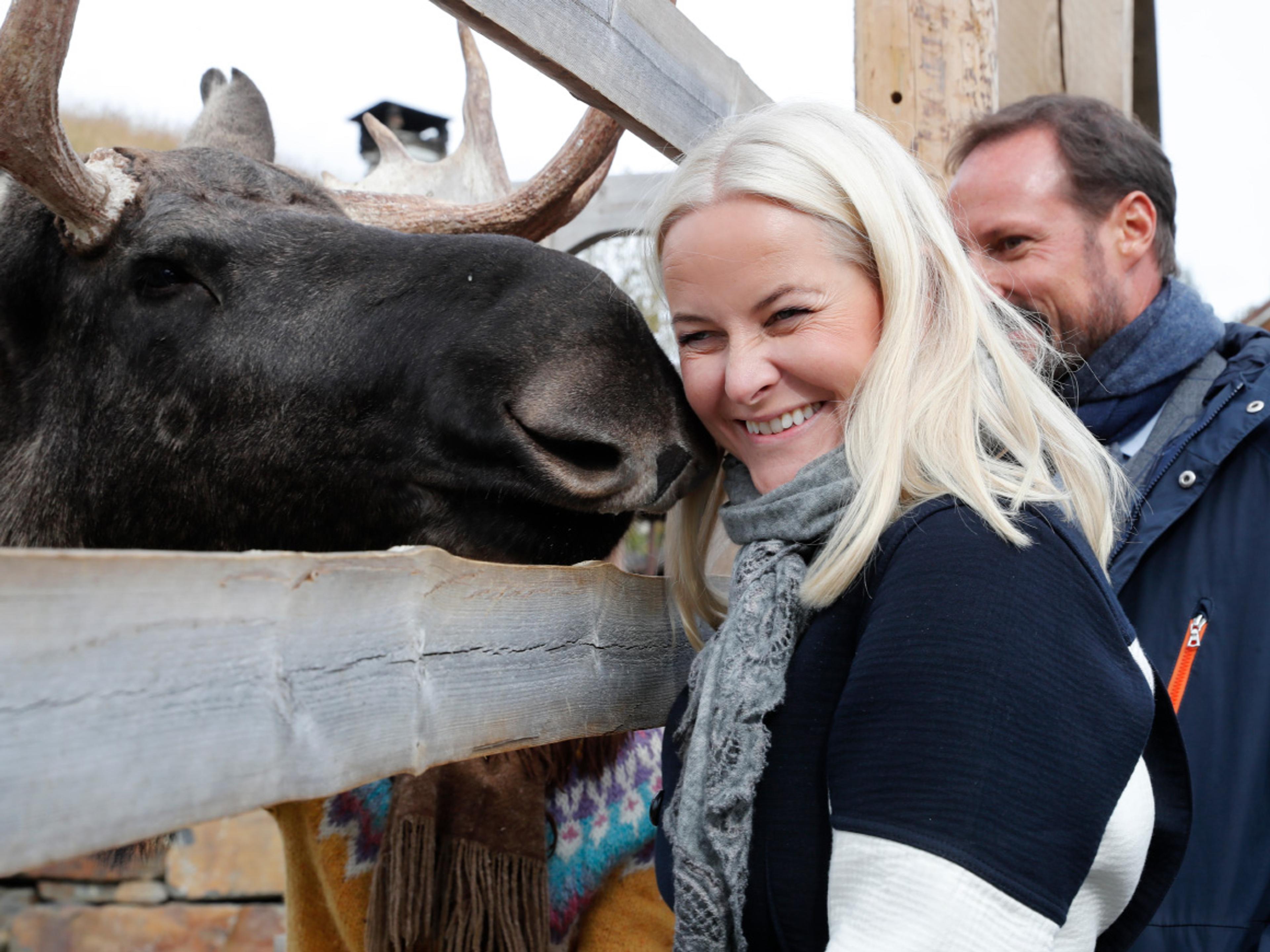 Kronprins Haakon og Kronprinsesse Mette-Marit fekk høve til å helse på mange av dyra.
