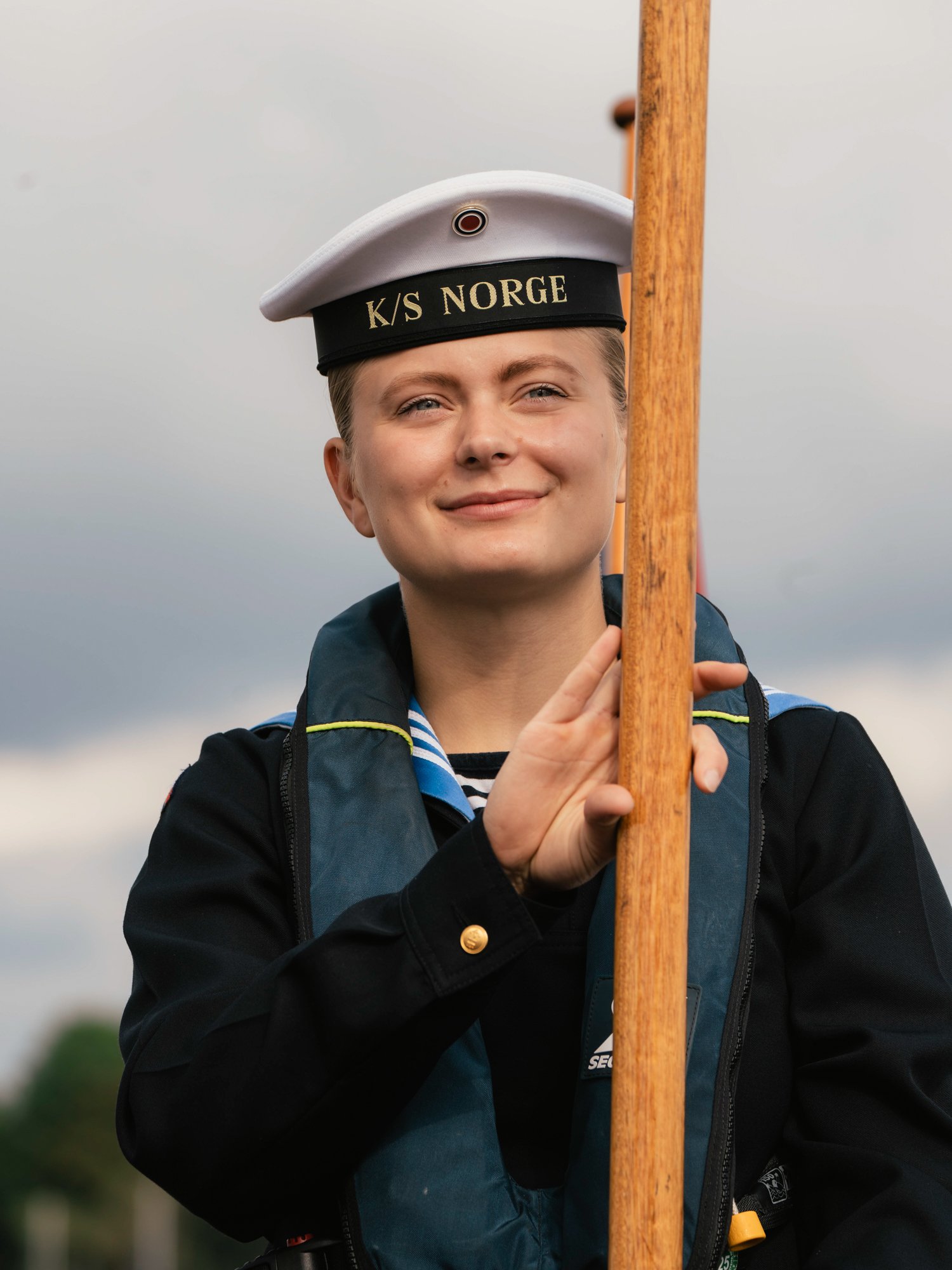 Når Kongen er om bord på Kongeskipet Norge, vaier Kongeflagget frå toppen av aktermasta.