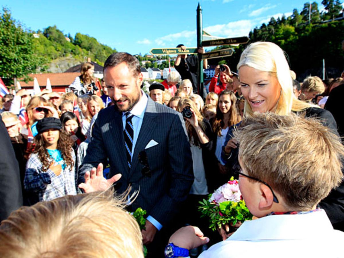 Deres Kongelige Høyheter Kronprinsen og Kronprinsessen besøker Vegårshei og Gjerstad kommuner på fylkesturens siste dag. Men landgangen i dag morges, den var i Tvedestrand.