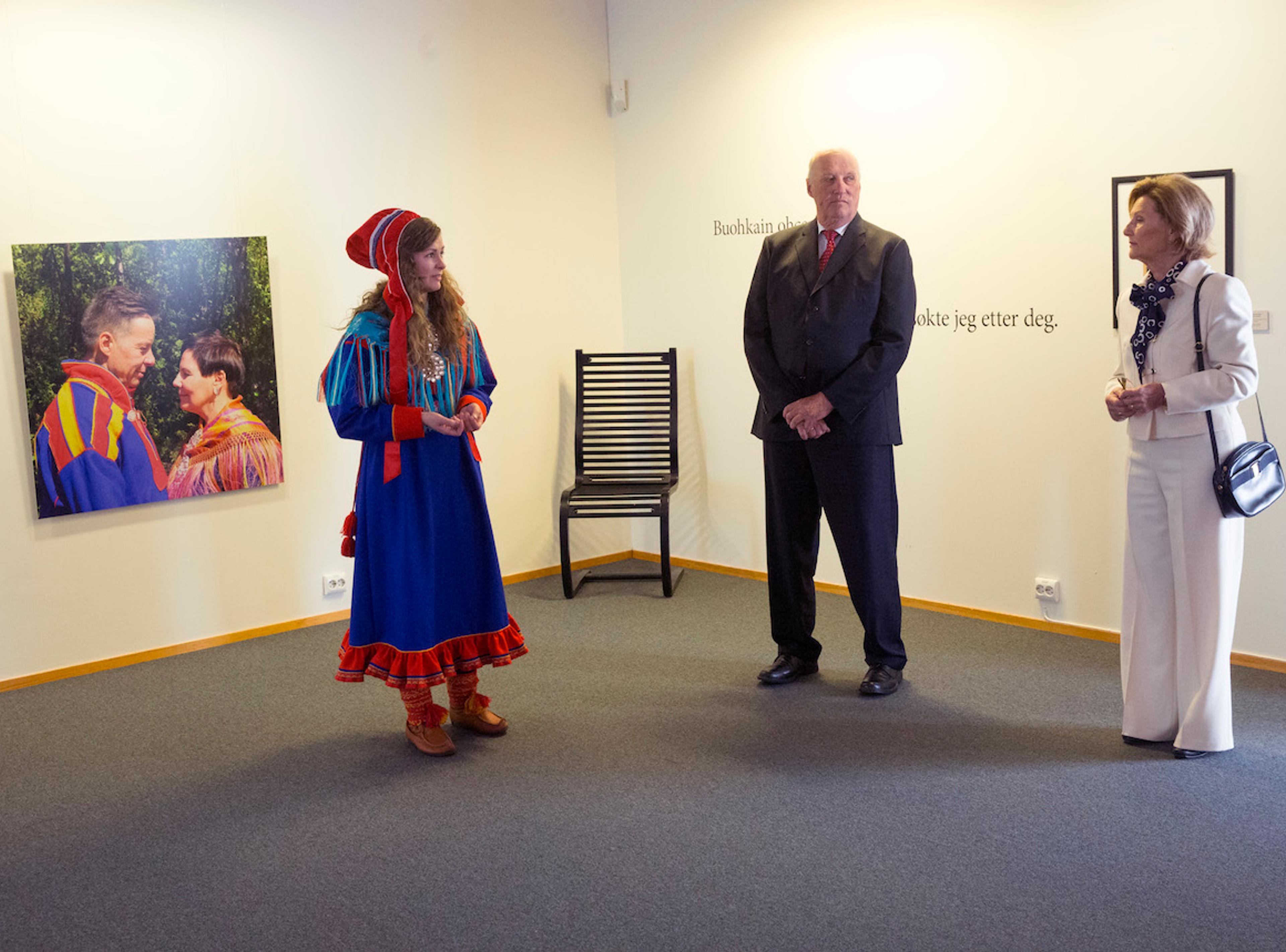 Ordfører Knut Store tok i mot Kong Harald og Dronning Sonja da de kom til Varanger samiske museum. Kongeparet ble også møtt med en velkomstjoik ved Johan Andersen.