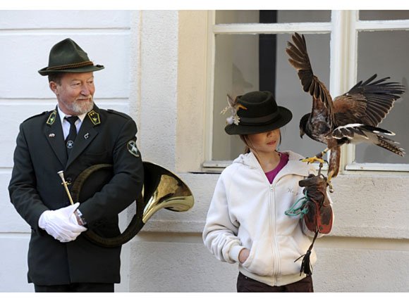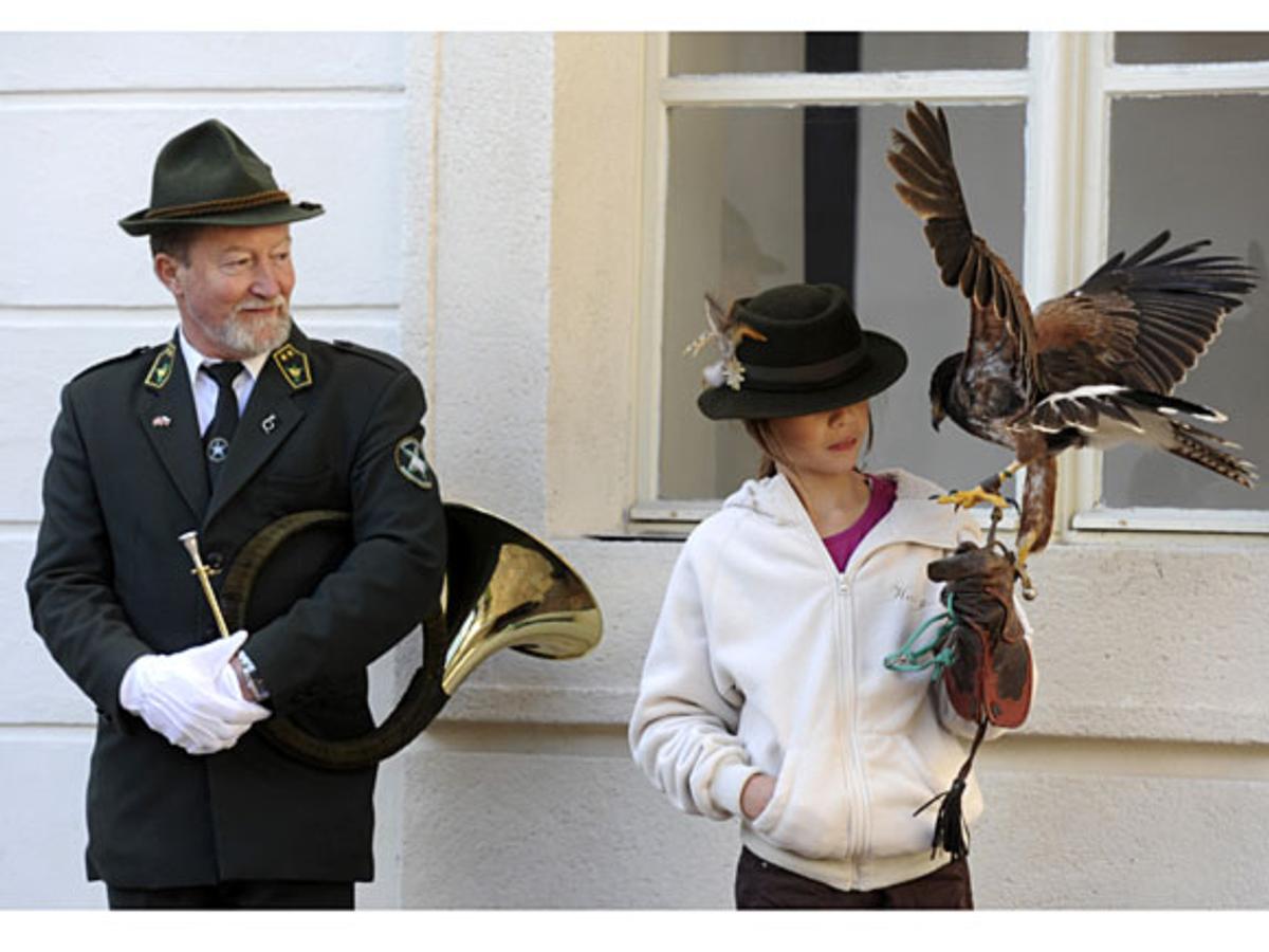 Den offisielle lunsjen fant sted på slottet Svätý Anton. Her ligger også et jaktmuseum, og etter måltidet fikk Kongeparet blant annet se en oppvisning med jaktfalker.