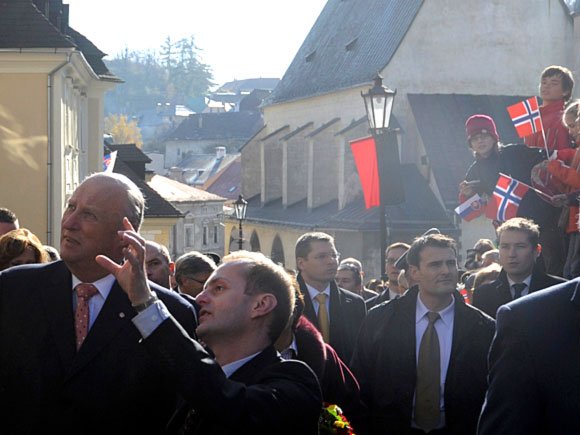 Deres Majesteter Kongen og Dronningen dro til den gamle gruvebyen Banská Štiavnica på sin siste dag i Slovakia. Byen har en omfattende aluminiumsindustri der både Norsk Hydro og Orkla er inne med eierskap og teknologi.