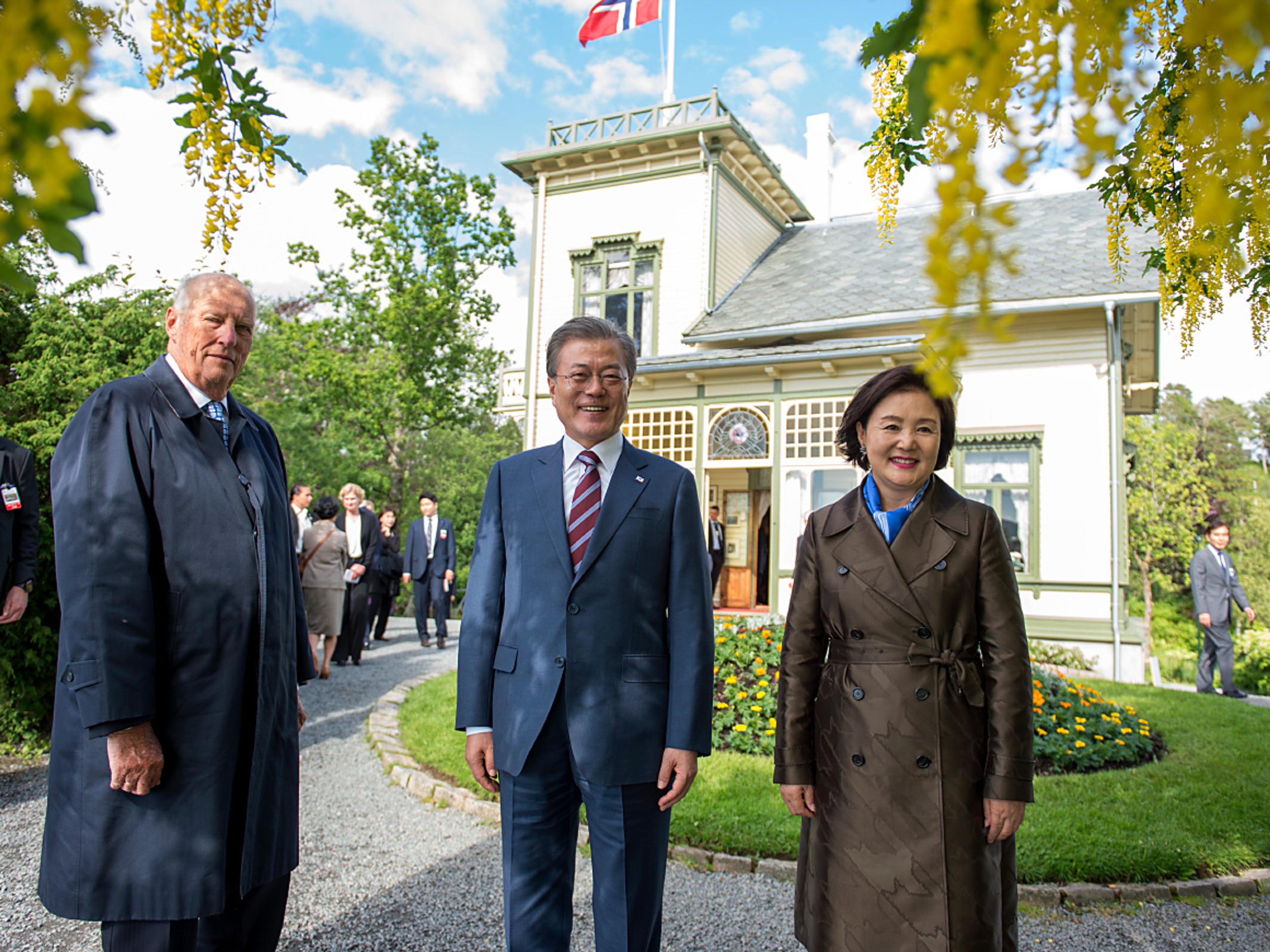 Et besøk til Edvard og Nina Griegs hjem Troldhaugen avsluttet Presidentparets statsbesøk. Da President Moon talte under lunsjen i Haakonshallen, understreket han at Edvard Grieg, og da spesielt "Solveigs sang", er kjent for mange koreanere. Så var det da nettopp dette stykket som skulle runde av dagens lille konsert.