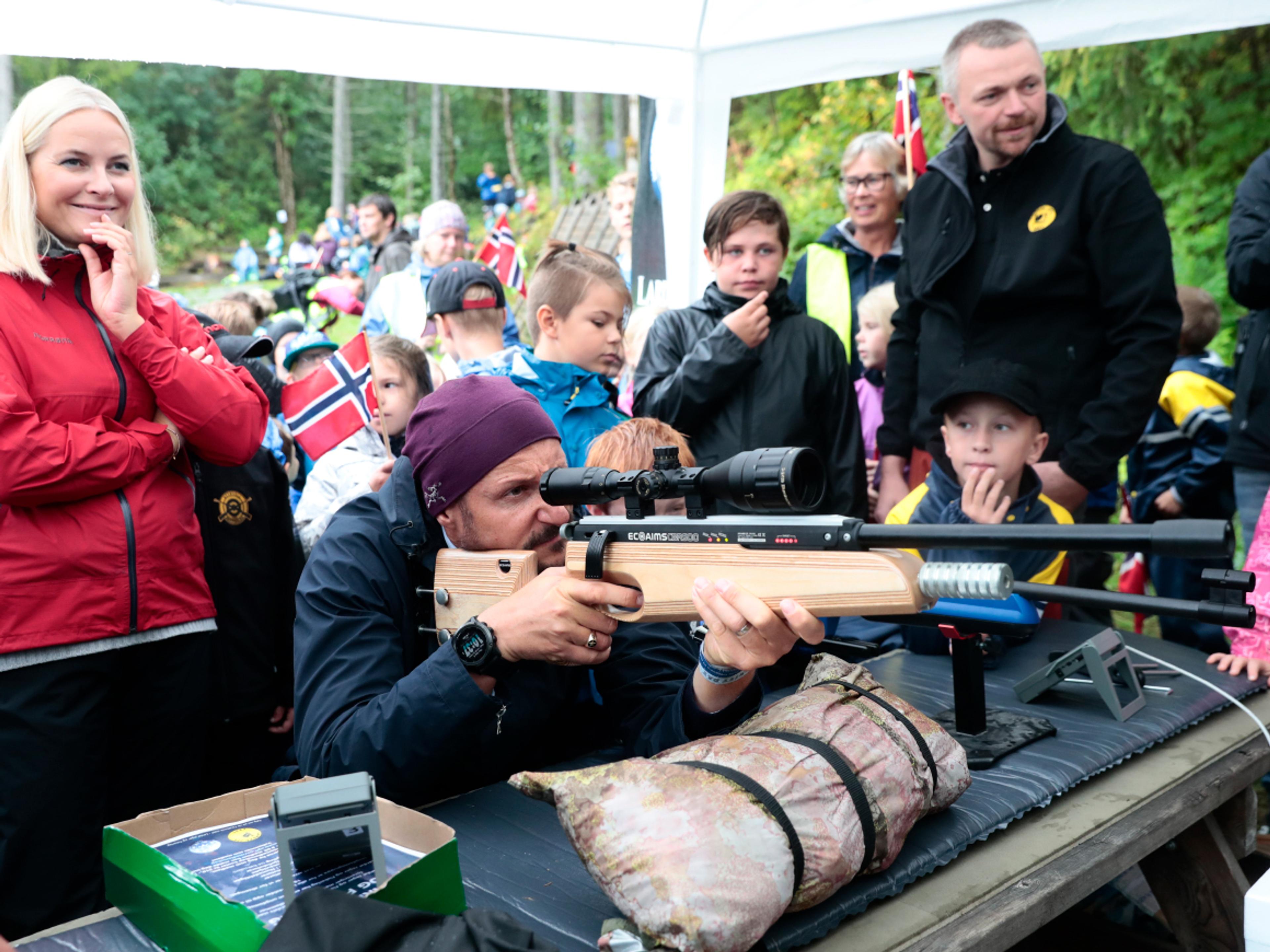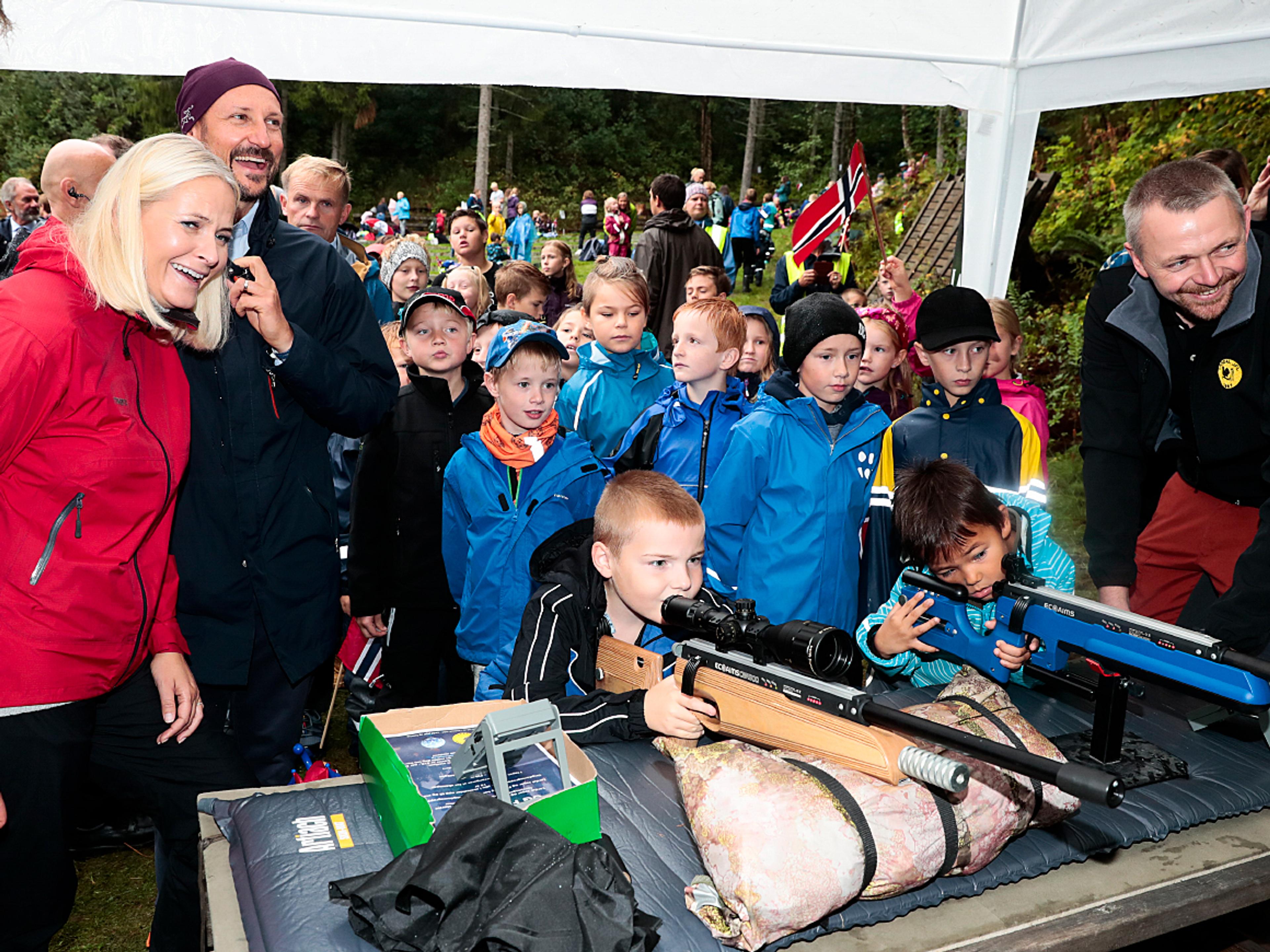 I dag fikk Kronprinsen og Kronprinsessen møte barn og voksne som fortalte om sine interesser og alt man kan ta seg til i Lardal. Her var barn og unge fra 4H - som Kronprins Haakon er beskytter for, ungdom fra Lardal jeger og fisk, og representanter fra Styrvoll skytterlag. Bygdekvinnene og Lardal Kunst og Hobby var også på plass i amfiet i dag.