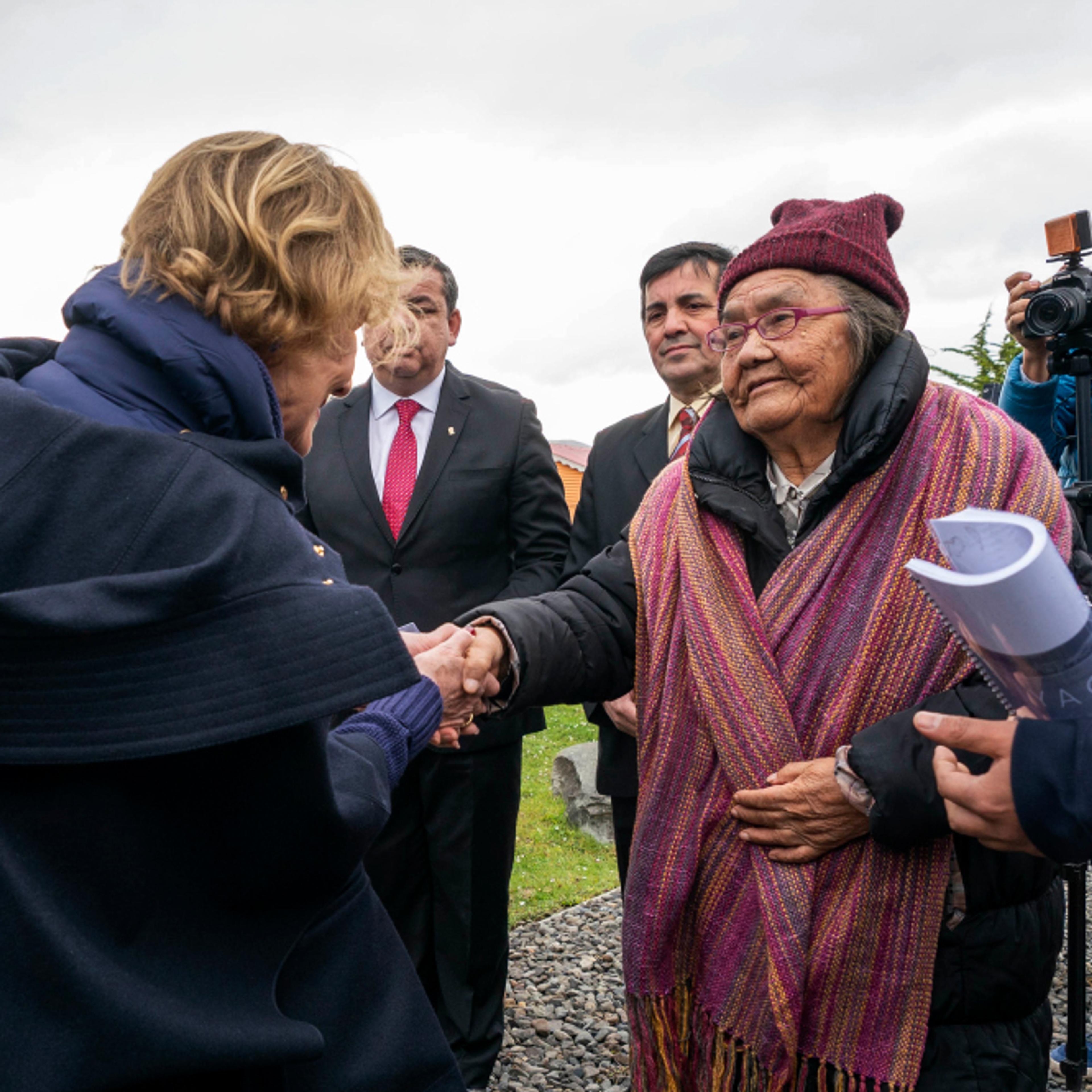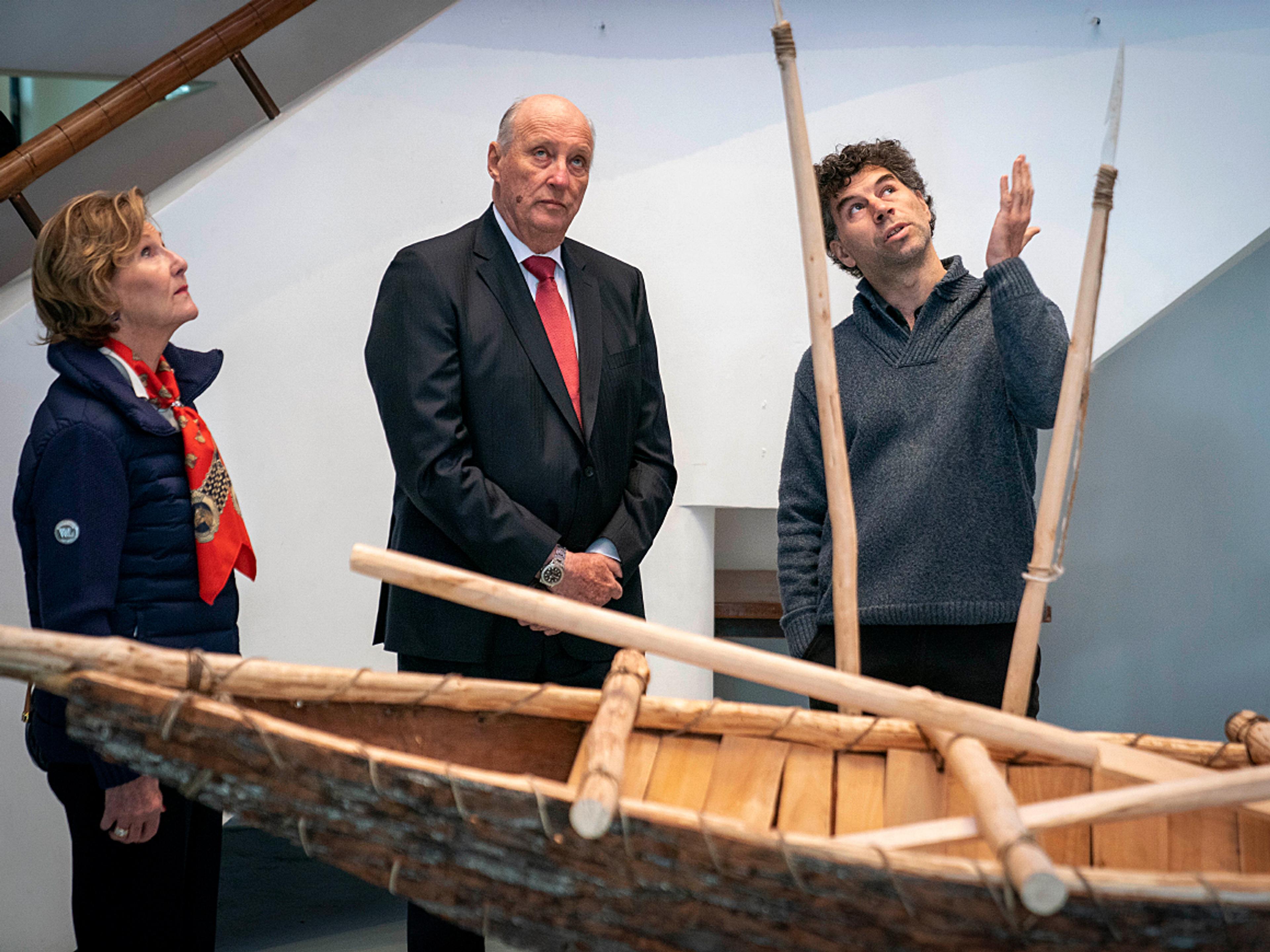 På Martin Gusinde Antropologiske Museum fikk Kongen og Dronningen lære mer om verdens sydligste folkeslag. Kunnskap om deres levesett, kultur og religion er samlet på museet.