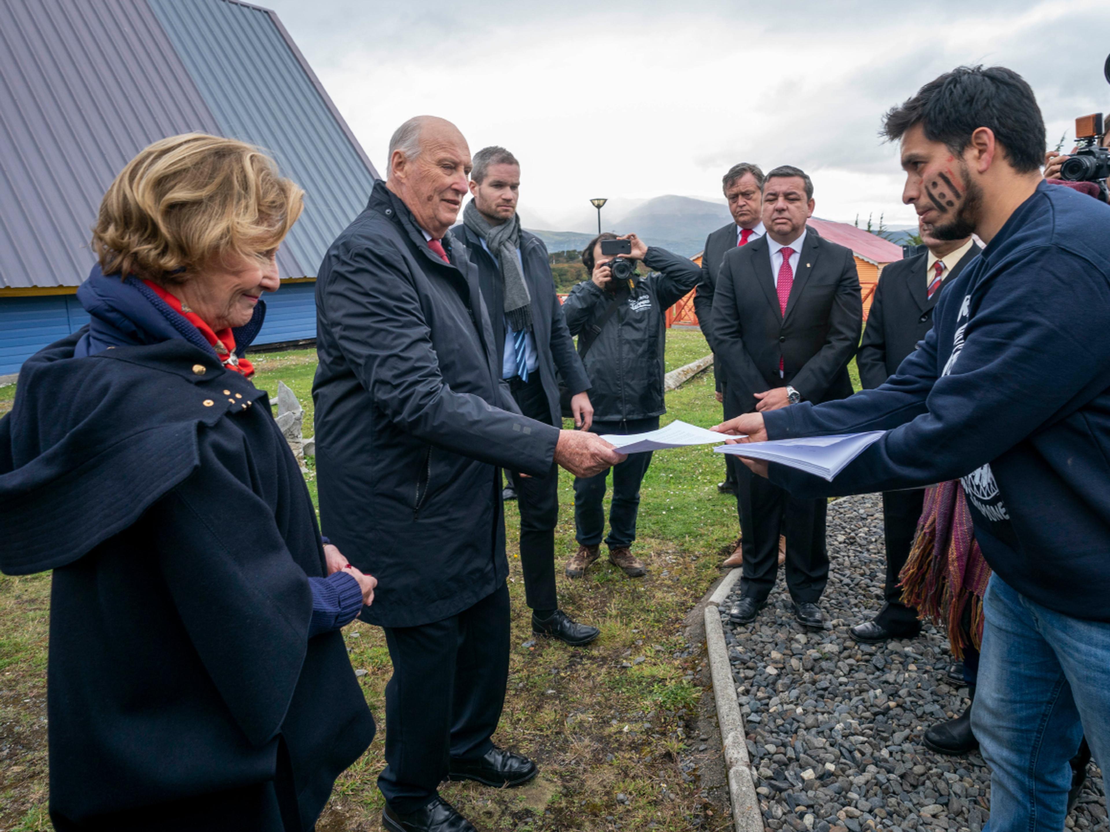 Kongeparet fikk overrakt et brev fra ordføreren og representanter for urbefolkningen. De mener et oppdrettsanlegg vil utgjøre en trussel mot naturen.
