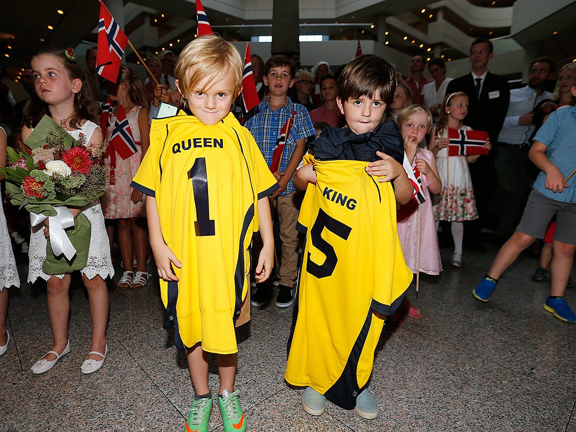 I kveld, lokal tid, var Kong Harald og Dronning Sonja gjester ved en mottakelse holdt av Colin Barnett, statsministeren i Western Australia. På veien dit, møtte de omlag 35 barn som som hadde møtt opp på hotellet sammen med foreldrene sine. De hadde helt spesielle fotballtrøyer med som gave til Kongen og Dronningen.