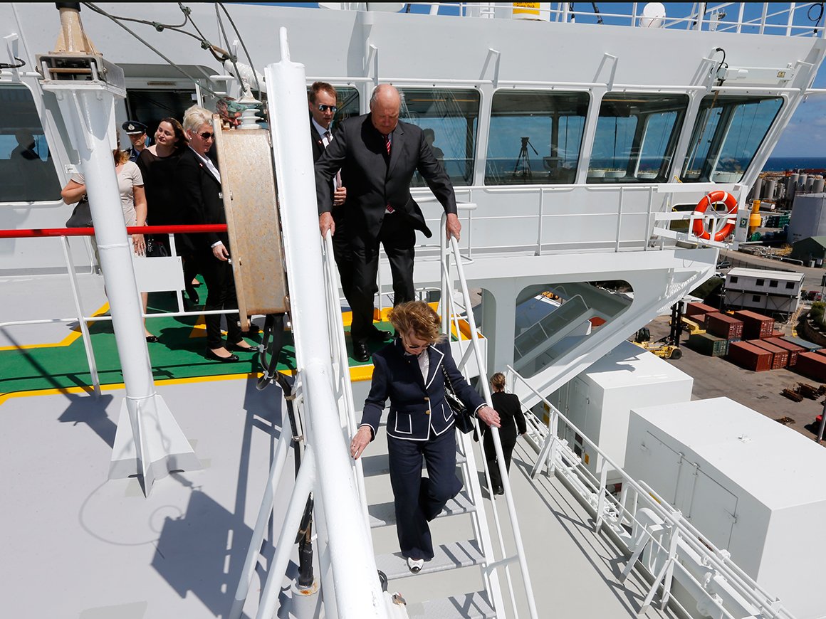 Wilhelmsens MV Tugela fikk besøk av både Deres Majesteter Kongen og Dronningen og olje- og energiminister Tord Lien i dag. Om bord ble det gitt en orientering om norsk maritimt engasjement i Australia og en presentasjon av norsk-australsk samarbeid innen maritim sektor og offshorevirksomheten.