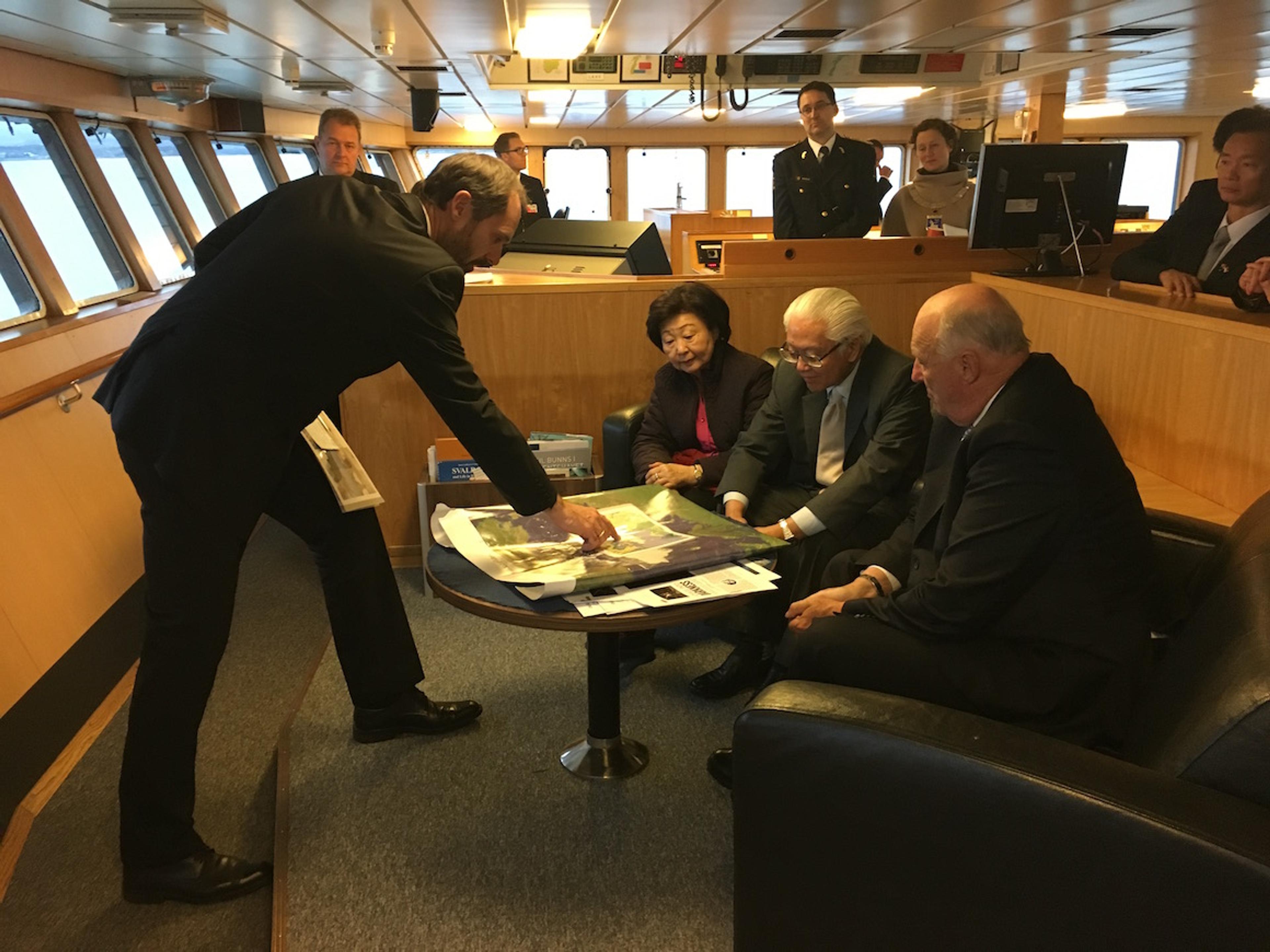 Forskningsskipet Helmer Hanssen var statsbesøkets siste stopp. Kong Harald og Presidentparet fikk en omvisning på selve fartøyet, før en presentasjon av noe av forskningsarbeidet som gjøres.