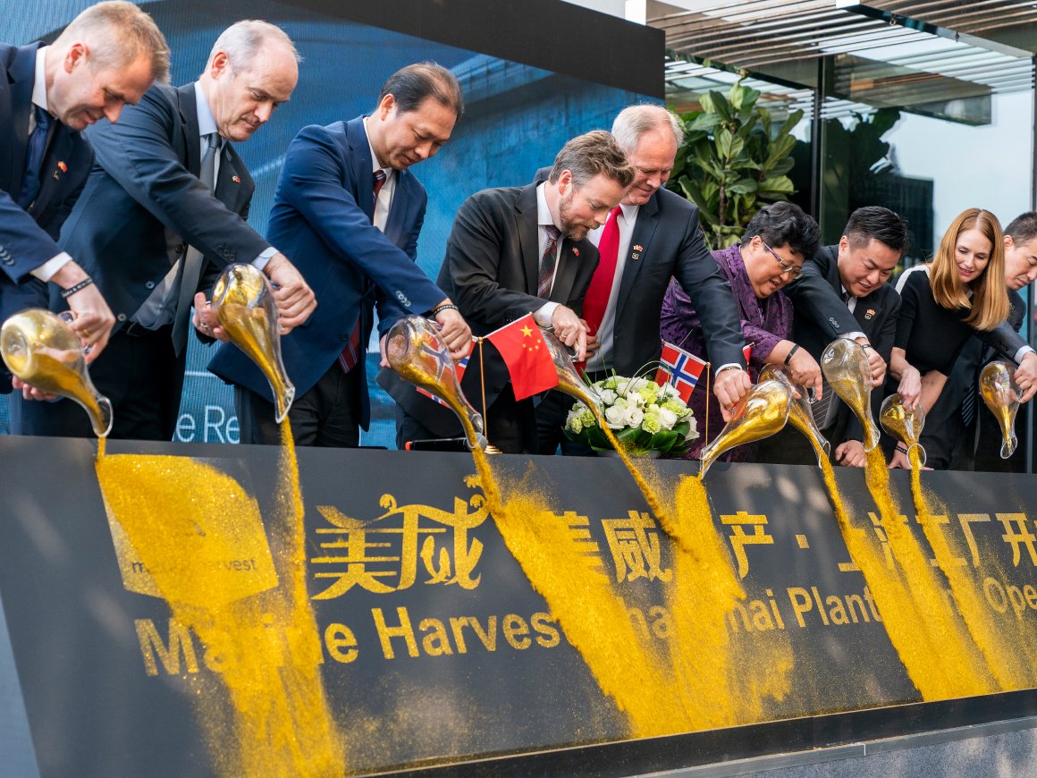 Kongeparet var til stede under den offisielle åpningen, i følge med den kinesiske forretningsmogulen Jack Ma. Den nye fabrikken plasserer den norske laksen midt i det voksende markedet i Shanghai, og Marine Harvest har inngått en avtale med Jack Mas selskap Alibaba om distribusjon til de kinesiske forbrukerne.