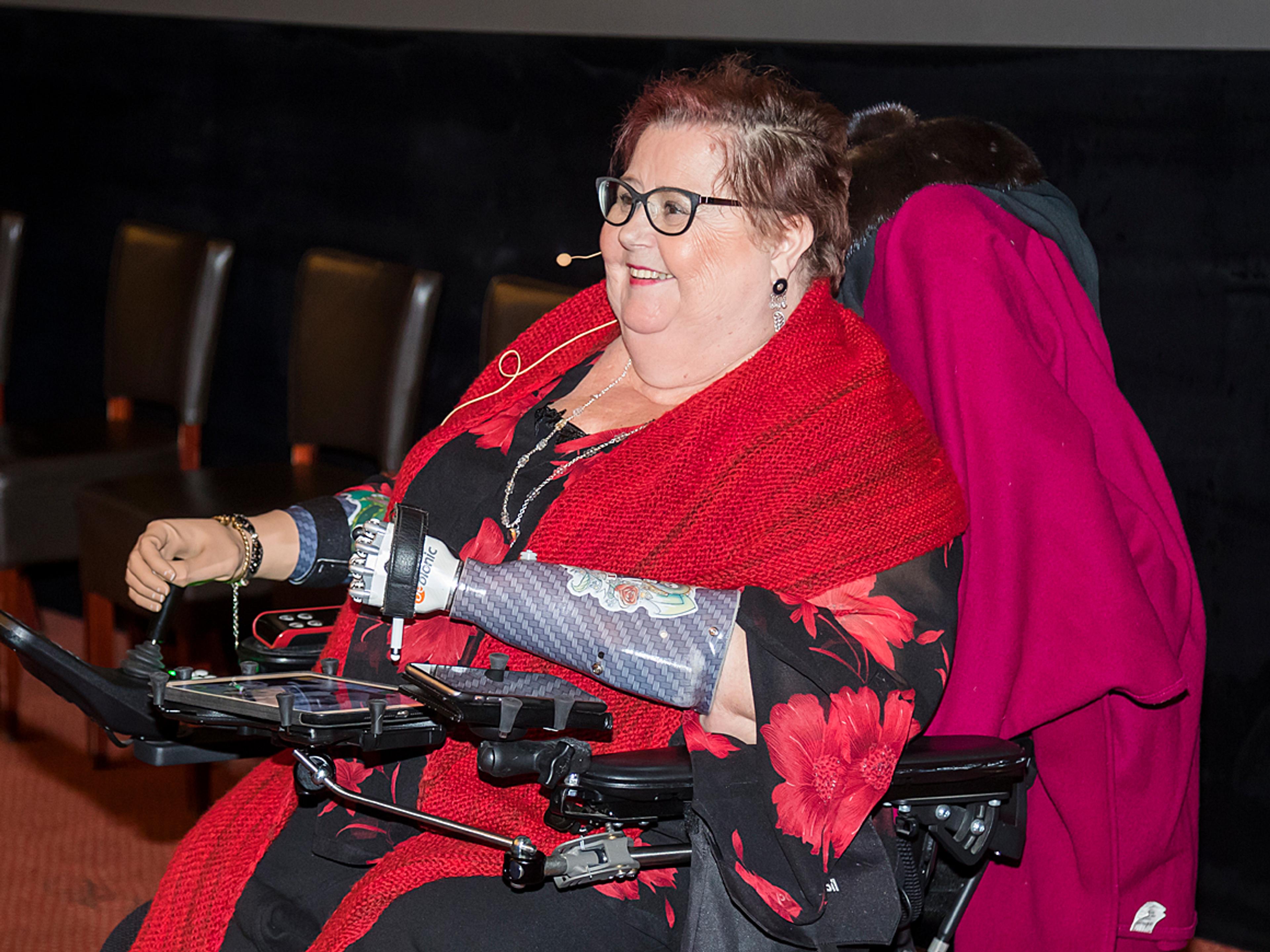 Grete Flattun ble rullestolbruker i voksen alder og holdt et sterkt innlegg om hennes perspektiv på å komme seg rundt i hverdagen før og nå. Det har blitt mange vareheiser, kjøkkeninnganger, høye fortauskanter og utilgjengelige bygg.