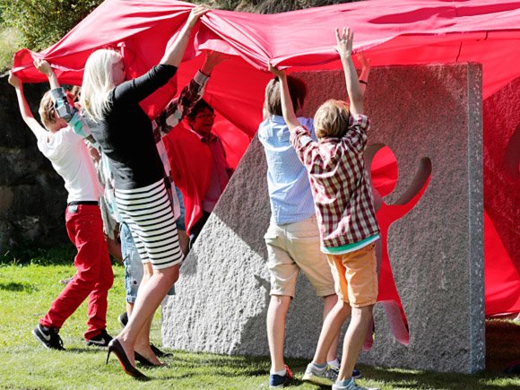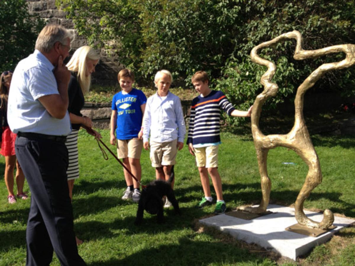 Fem av barna som har fått realisert skulpturane sine, var òg med, og det var dei som saman med Kronprinsesse Mette-Marit stod for avdukinga.