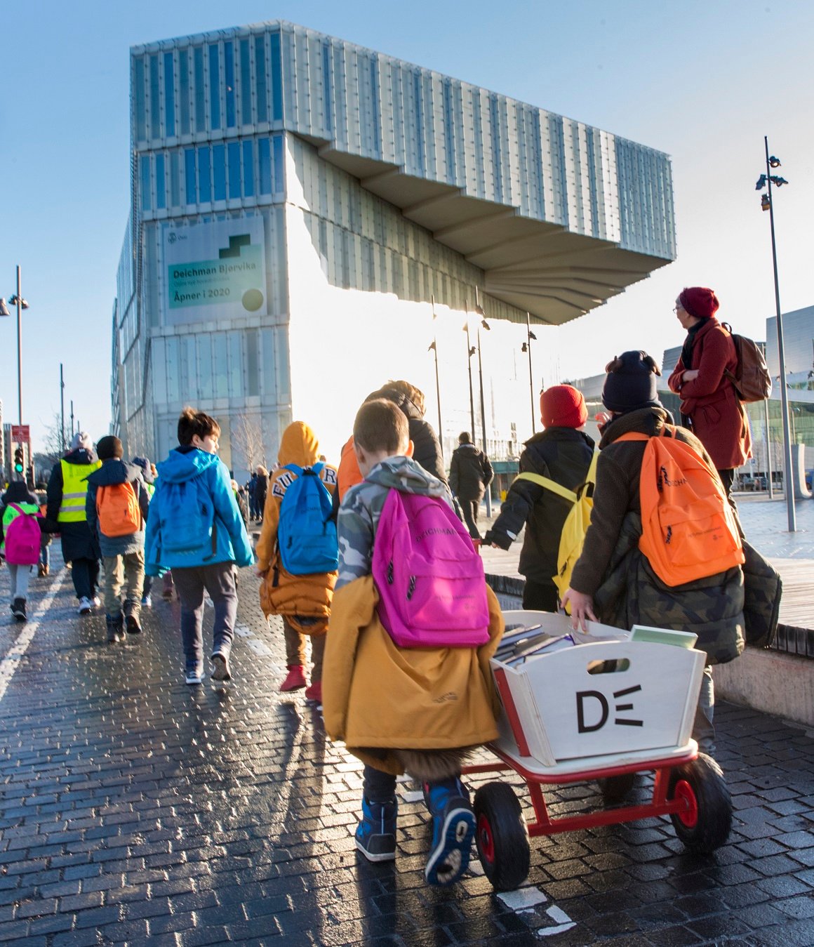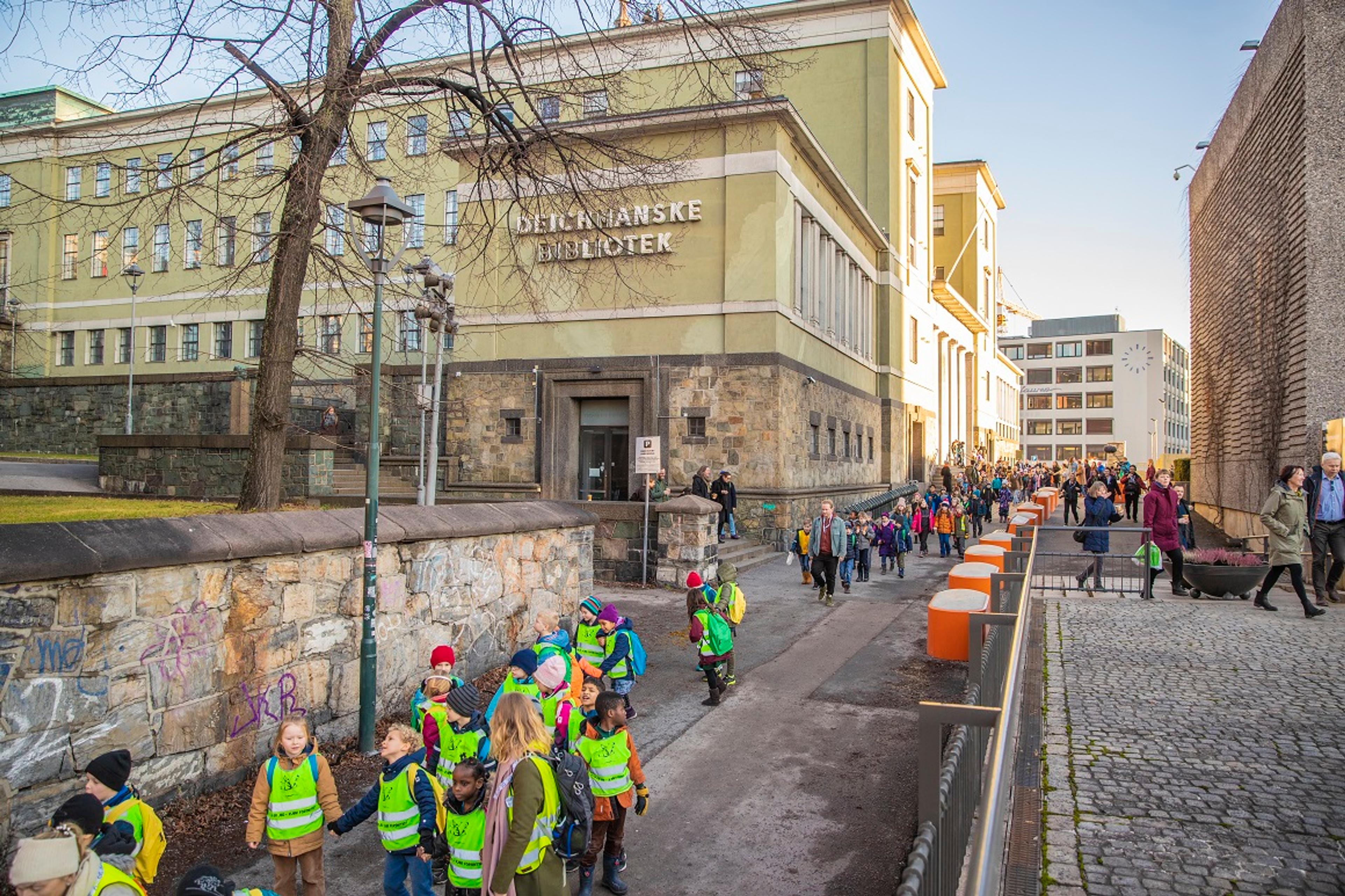 På ryggen bar barna fargerike sekker fylt med bøker fra barneavdelingen. Toget gikk fra Deichman Hovedbiblioteket på Hammersborg, bortover Akersgata, ned Oslos paradegate Karl Johan, over Christian Frederiks plass på sjøsiden av Oslo S før det ankom Deichman Bjørvika – midt mellom Oslo S og Operaen.