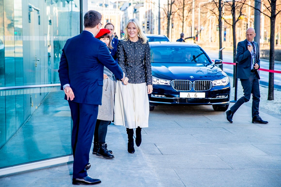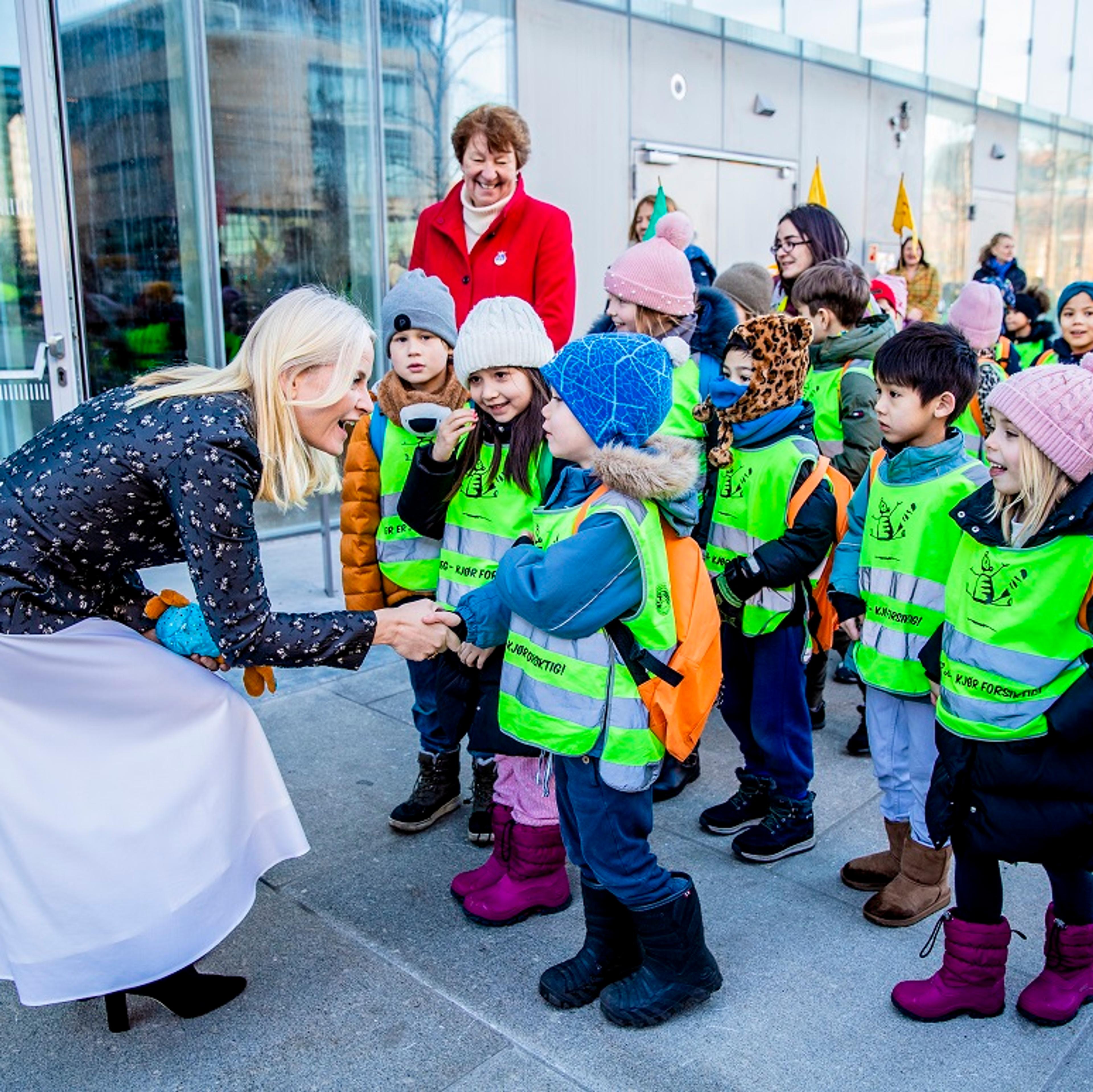 Utenfor Deichman Bjørvika ble barna tatt imot av Kronprinsesse Mette-Marit. Kronprinsessen er Norsk bibliotekforenings høye beskytter og har engasjert seg for litteratur og leseglede gjennom mange år, ikke minst gjennom sine fem litteraturtog i Norge og litteraturtog i Tyskland.