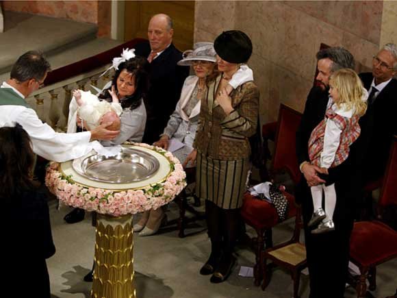 Dåpskjolen som ble benyttet ble sydd av dåpsbarnets tippoldemor, Prinsesse Ingeborg, i 1920. Den har siden vært benyttet ved dåp av hennes og Prins Carls etterkommere.