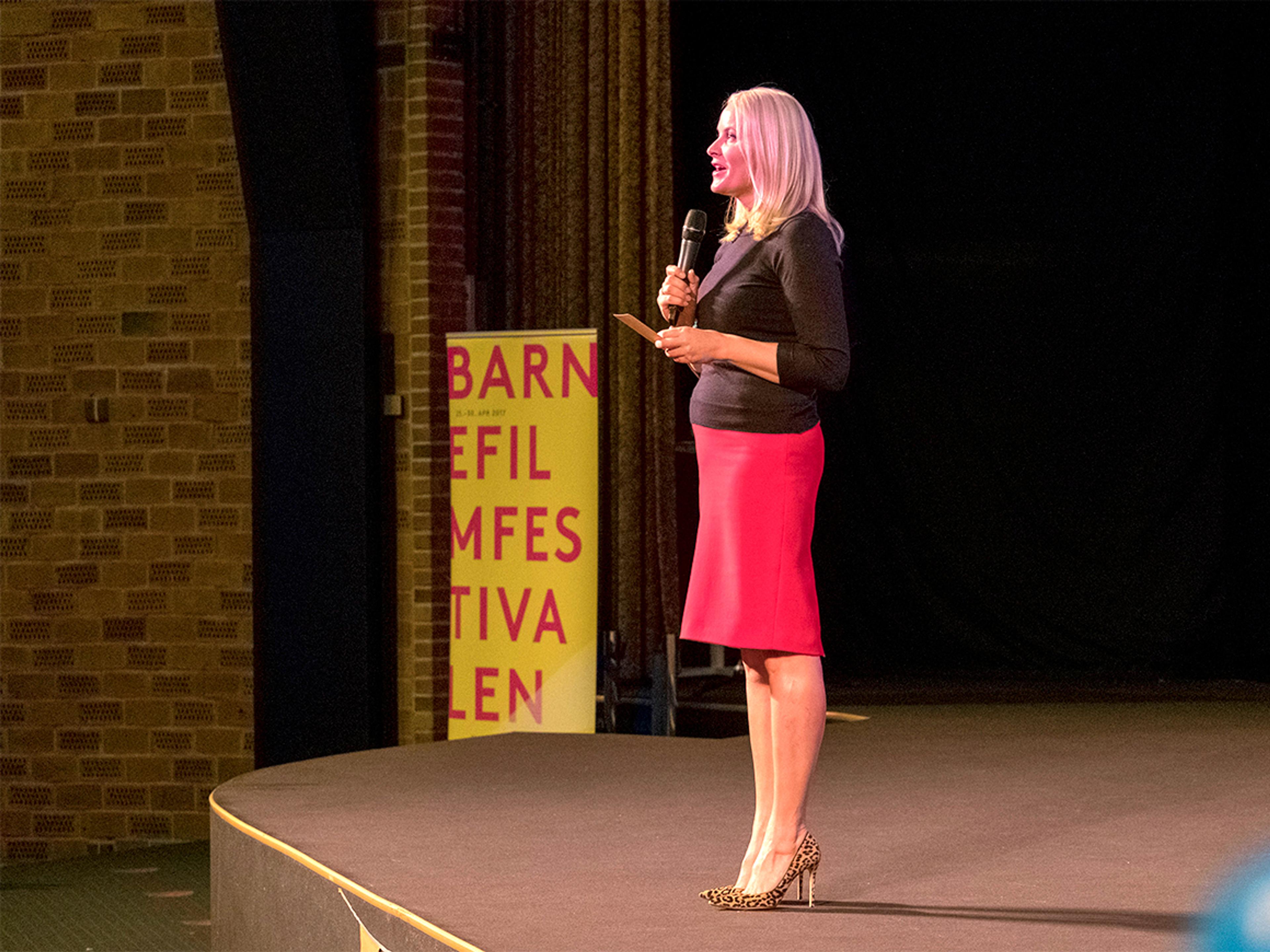 Hennes Kongelige Høyhet Kronprinsessen åpnet i dag Kristiansand Internasjonale Barnefilmfestival. Sammen med en kinosal full av barn fikk hun se åpningsfilmen, Richard Storken.