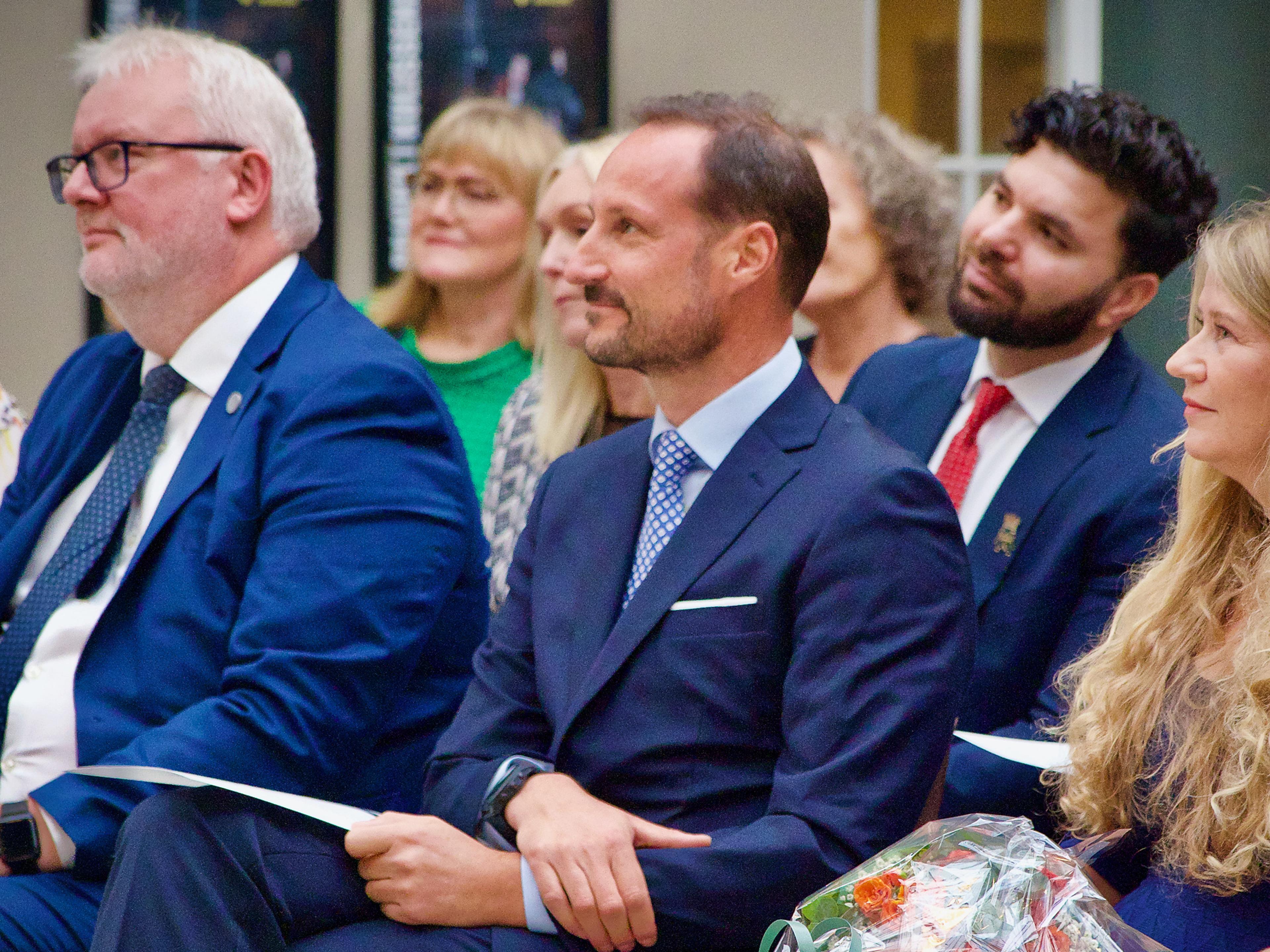 Hans Kongelige Høyhet Kronprins Haakon besøkte i dag Dronning Mauds Minne Høgskole for barnehagelærerutdanning (DMMH) i Trondheim som i år har 75-årsjubileum.