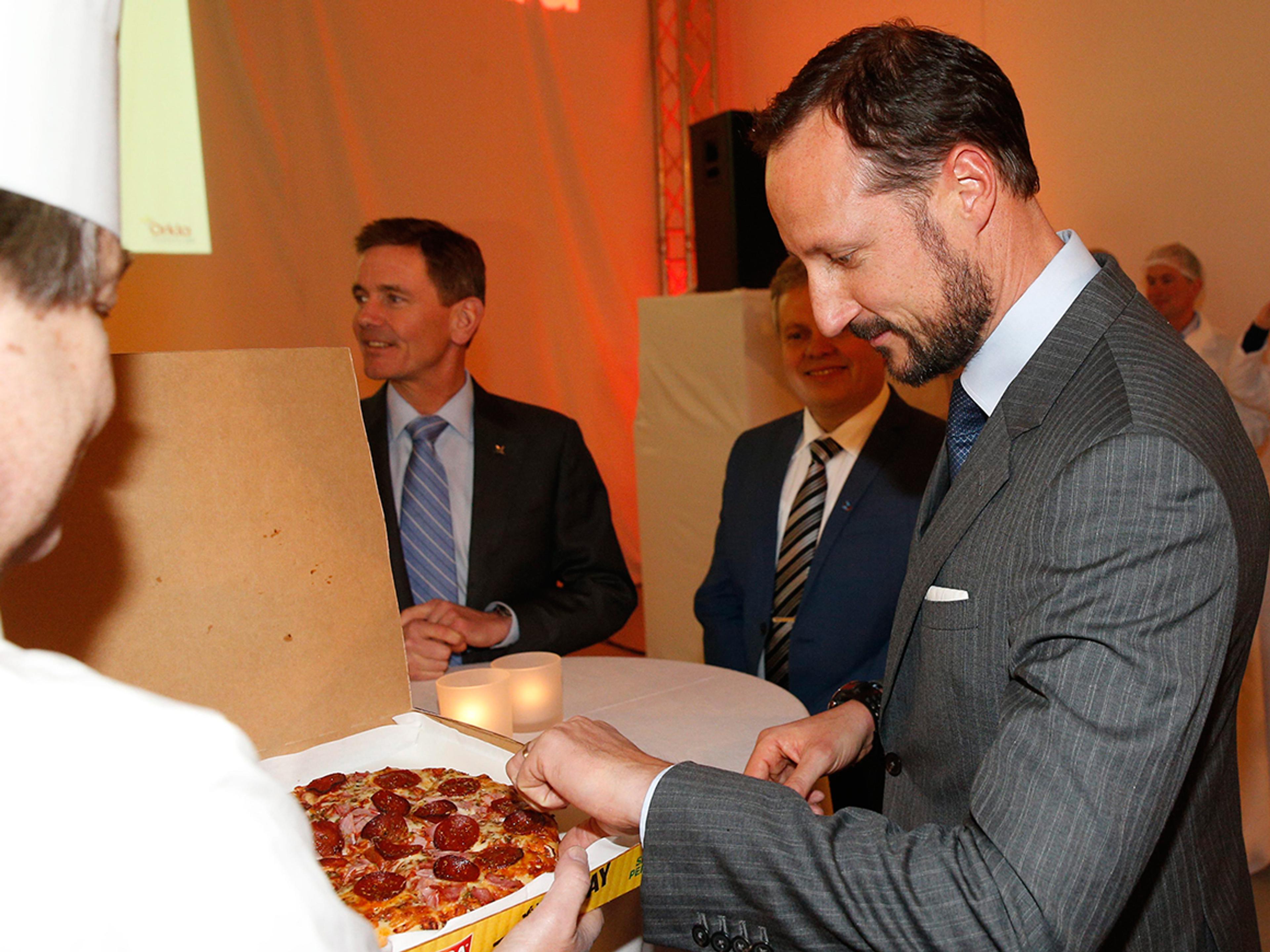 Pizzaen inntok det norske markedet tidlig på 80-tallet og i dag spiser spiser vi nordmenn mer enn 20 millioner Grandiosa hvert år. Ledet av administrerende direktør i Orkla Food Norge, Paul Jordahl, fikk Kronprinsen en omvisning i anlegget der den folkekjære pizzaen produseres.