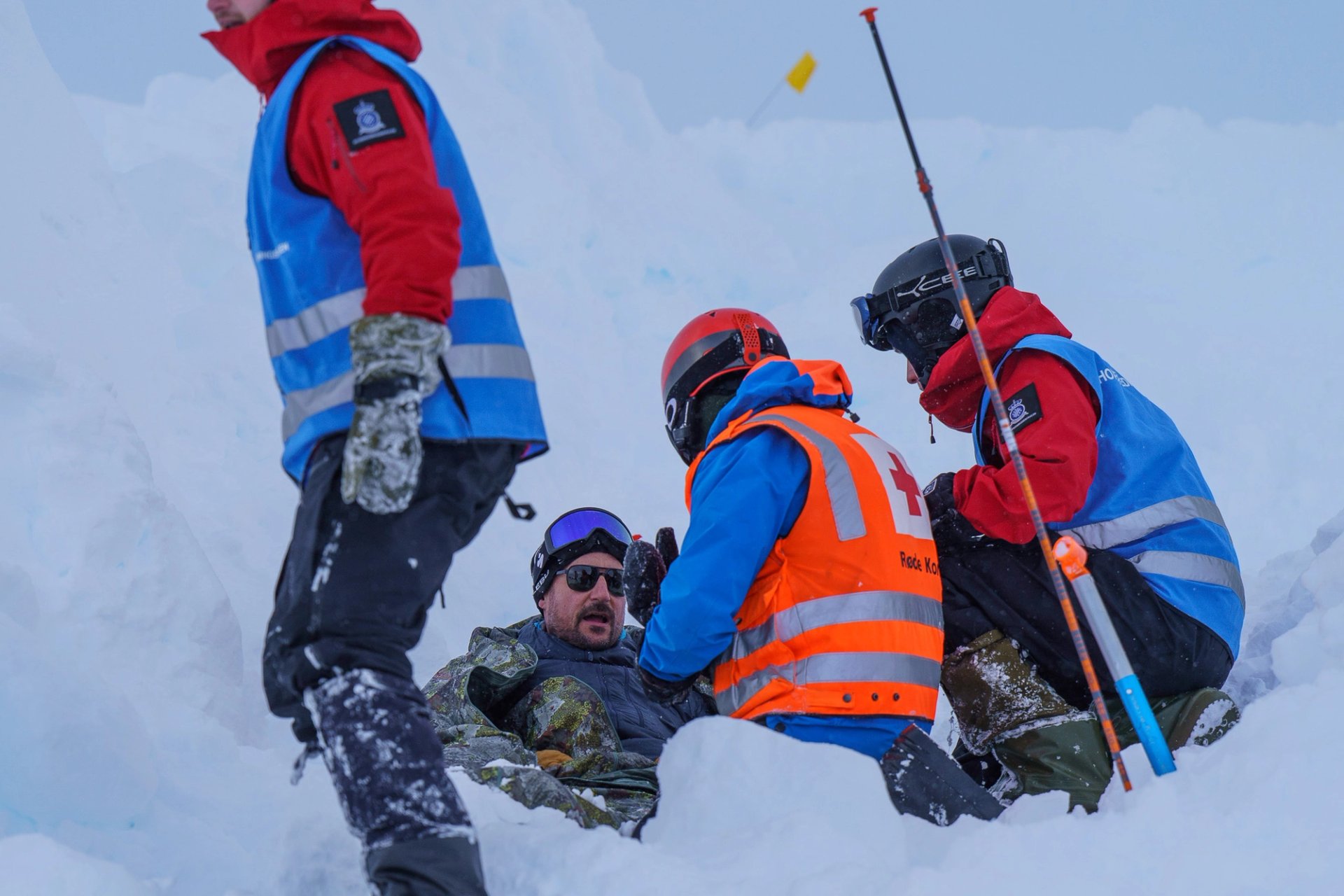 Kronprins Haakon og Kronprinsesse Mette-Marit fekk også sjølve ta del i ulike øvingsmoment saman med kursleiarar, deltakarar og frivillige under besøket. Mellom anna var dei med på øvingar i felt med fokus på livreddande søk i skred – og søk etter skredtatt med elektronisk sendar og mottakar.