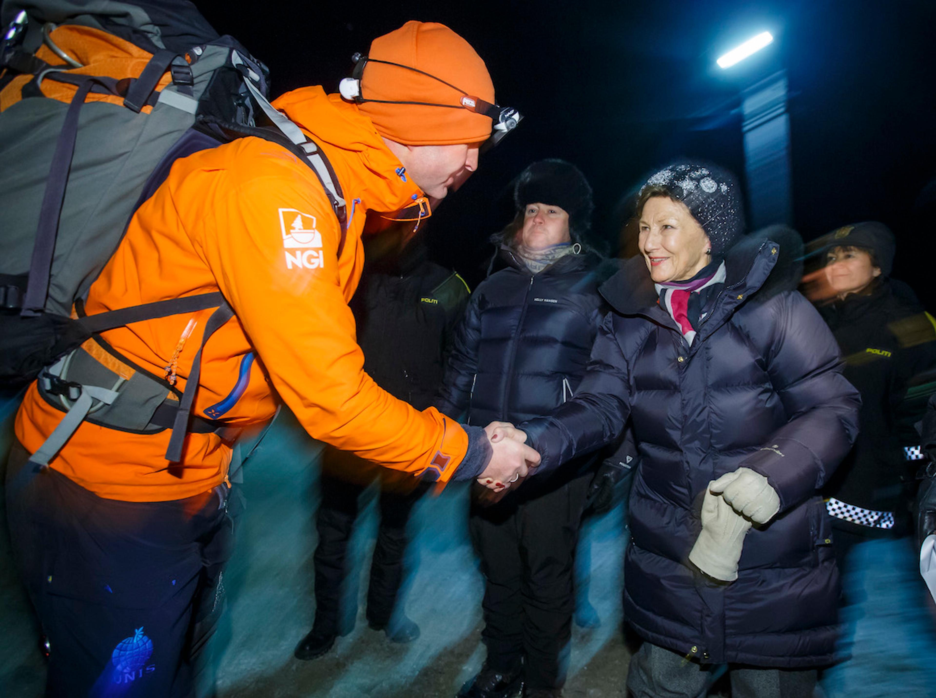 Hennes Majestet Dronningen er på Svalbard. Dronning Sonja ønsker å se rasområdet, snakke med de mange frivillige og møte berørte etter det store skredet før jul.