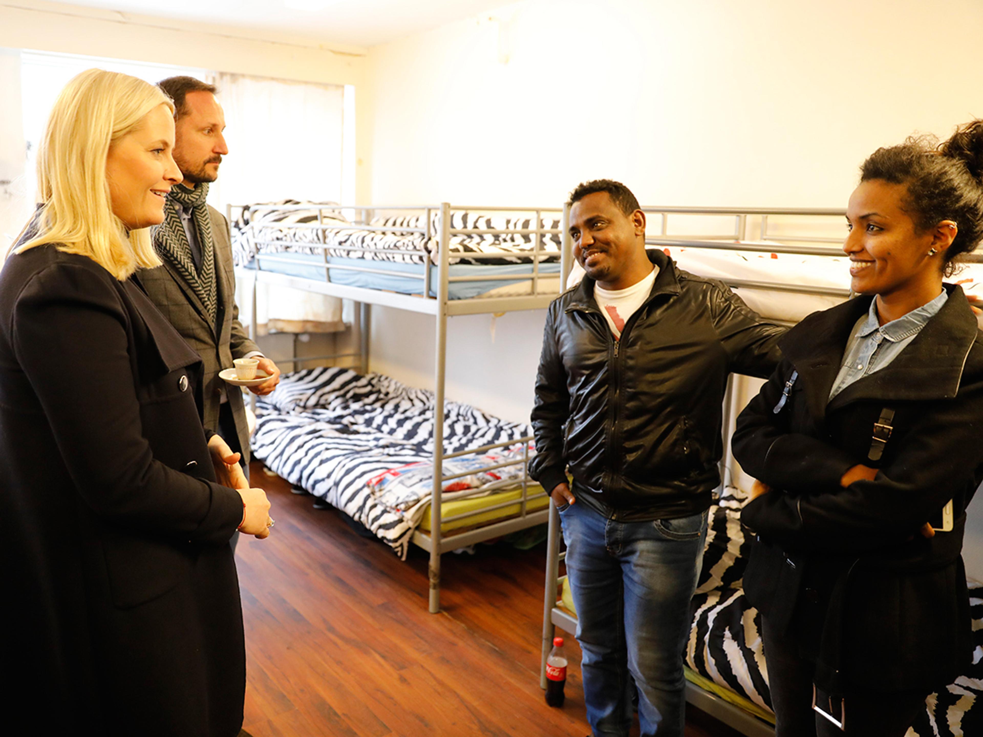 Hvordan er det å bo på et asylmottak? I dag fikk Kronprinsparet møte beboere på Torshov transittmottak i Oslo.