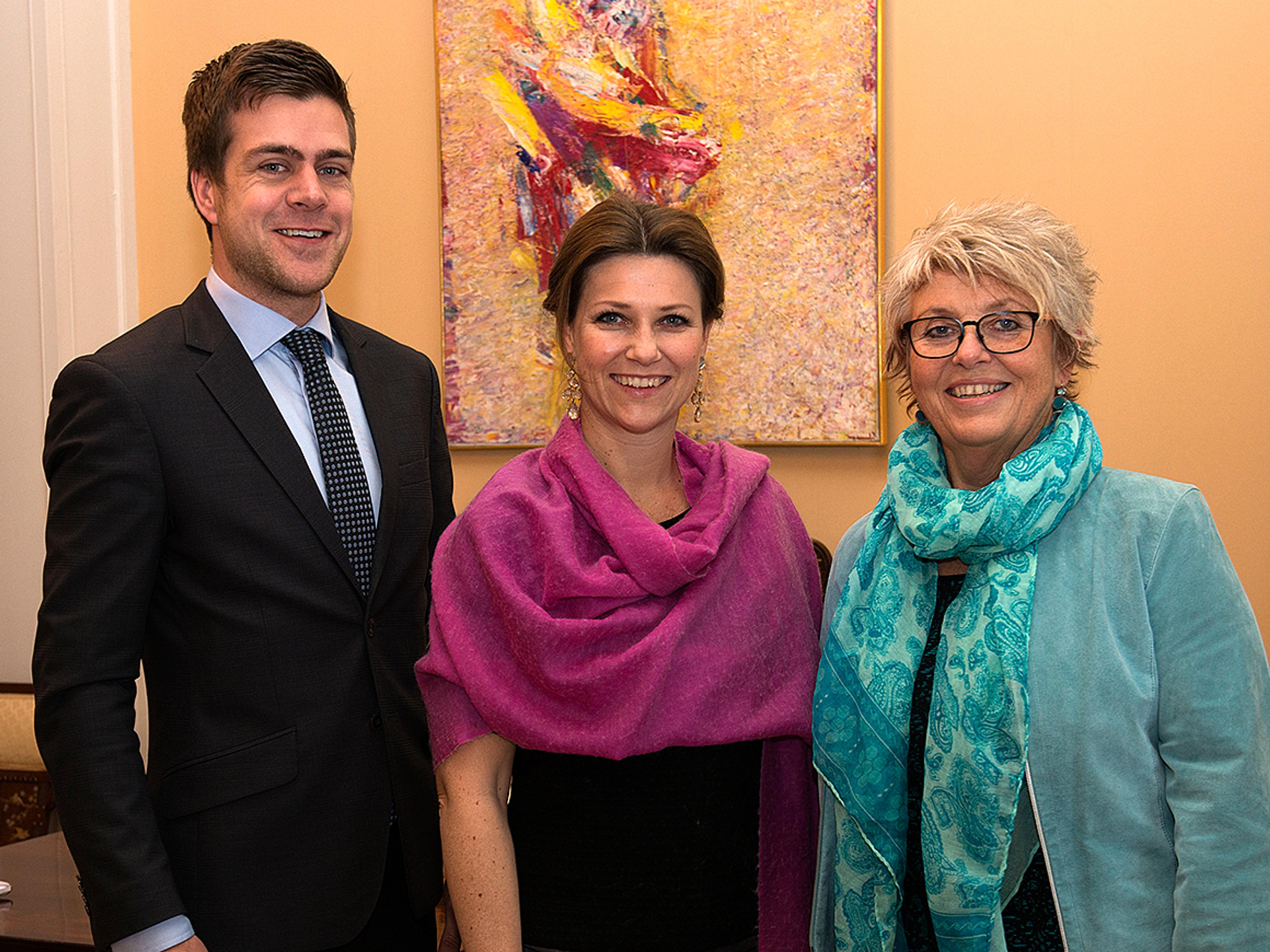 Prinsesse Märtha Louise besøkte i dag Helse- og omsorgsdepartementet i sentrum av Oslo og ble ønsket velkommen av statsråd Bent Høie.
