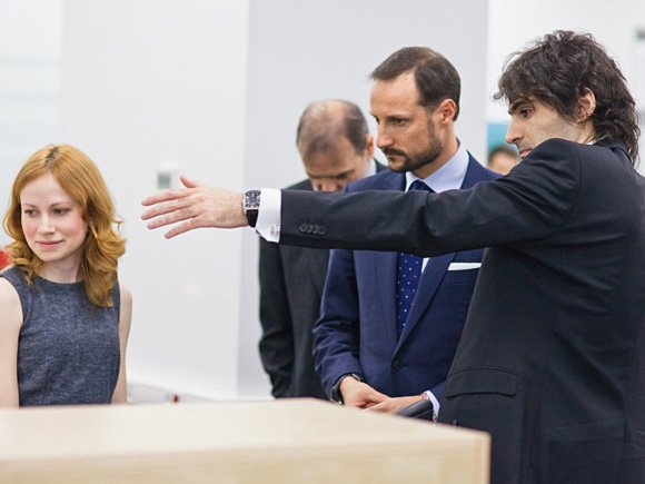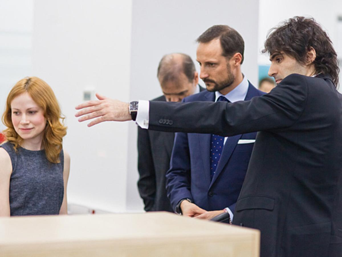 Kronprins Haakon fikk en innføring i bakgrunnen for virksomheten i kontorene ved Vinterpalasset i dag. To ansatte fortalte dessuten om forskningssamarbeidet og om hvordan det er å være en ung, russisk ingeniør i et norsk selskap.