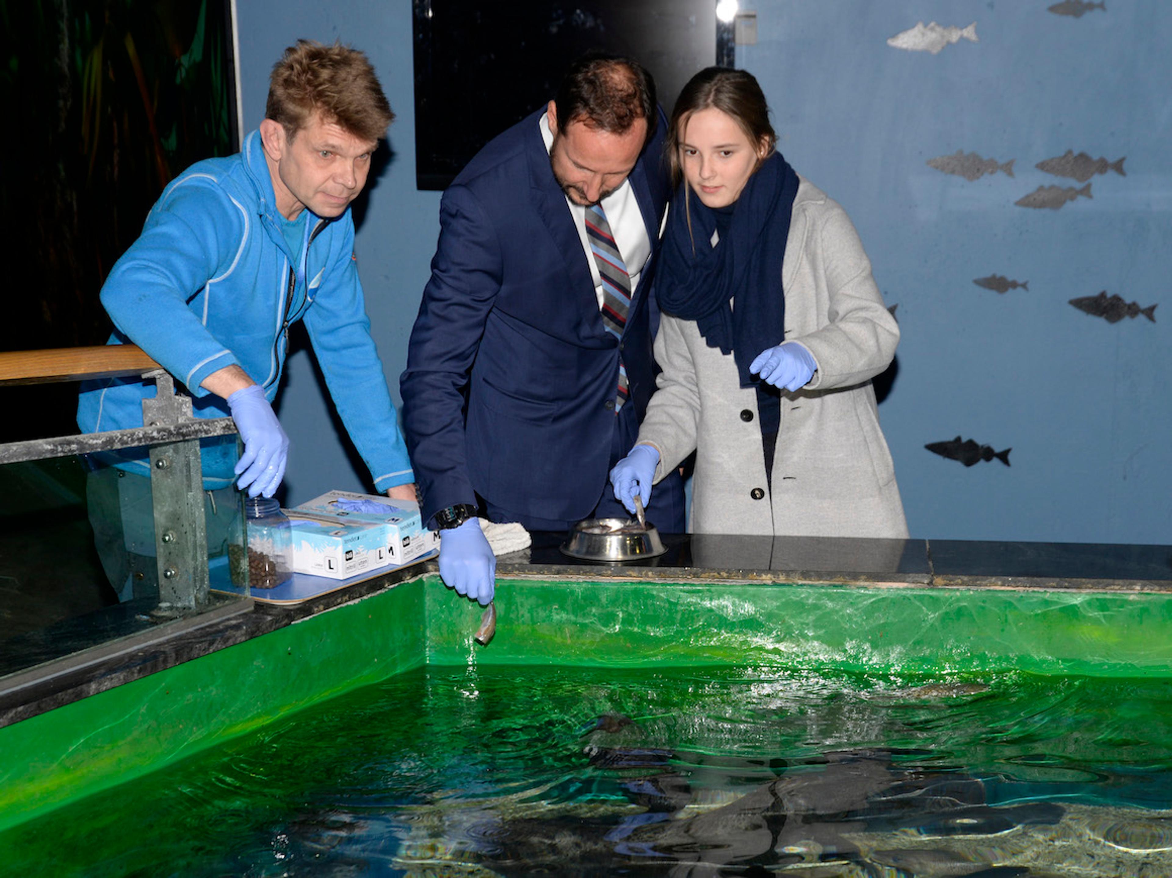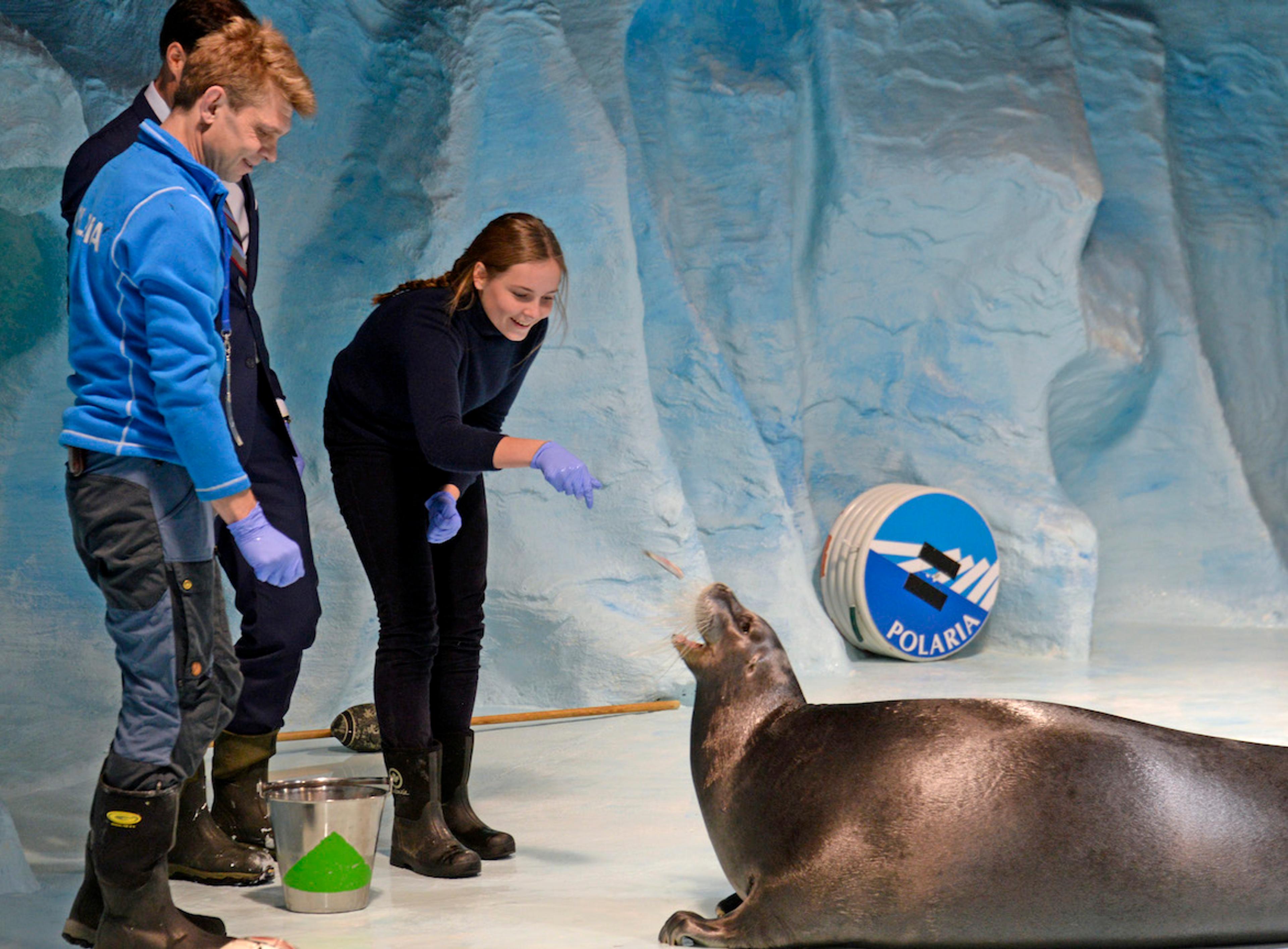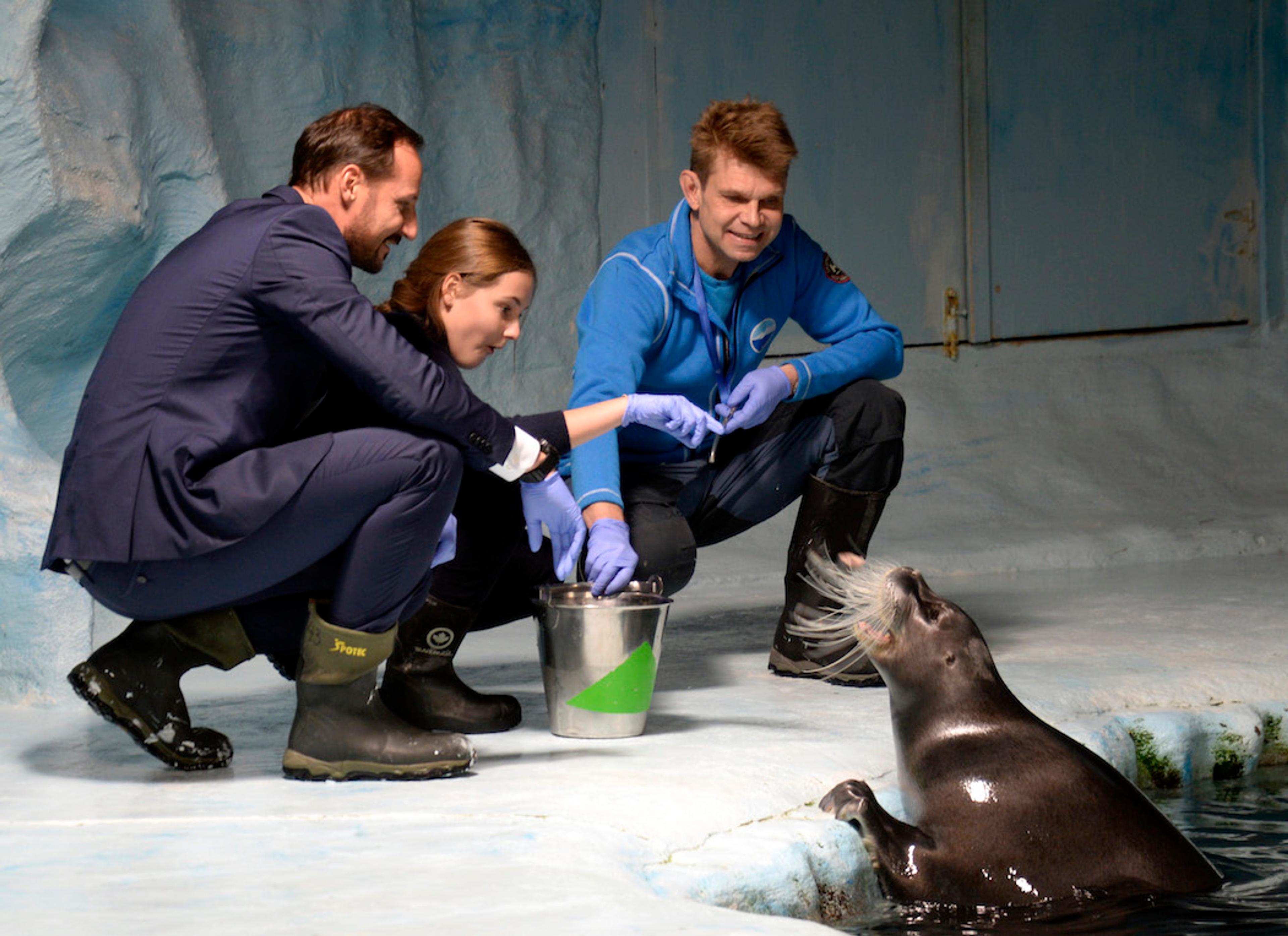 Opplevelsessenteret Polaria har akvarier med sel, fisk og sjødyr fra arktiske områder. Prinsesse Ingrid Alexandra fikk mate både steinbit og sel.