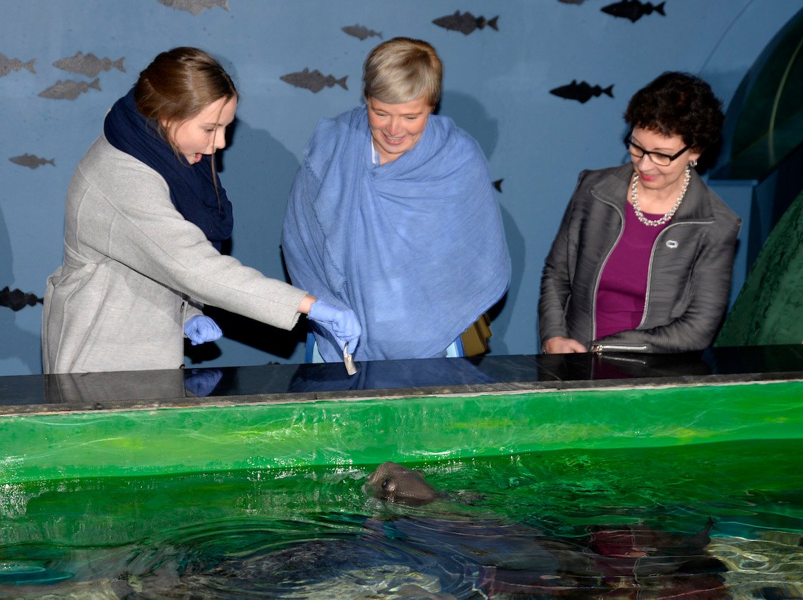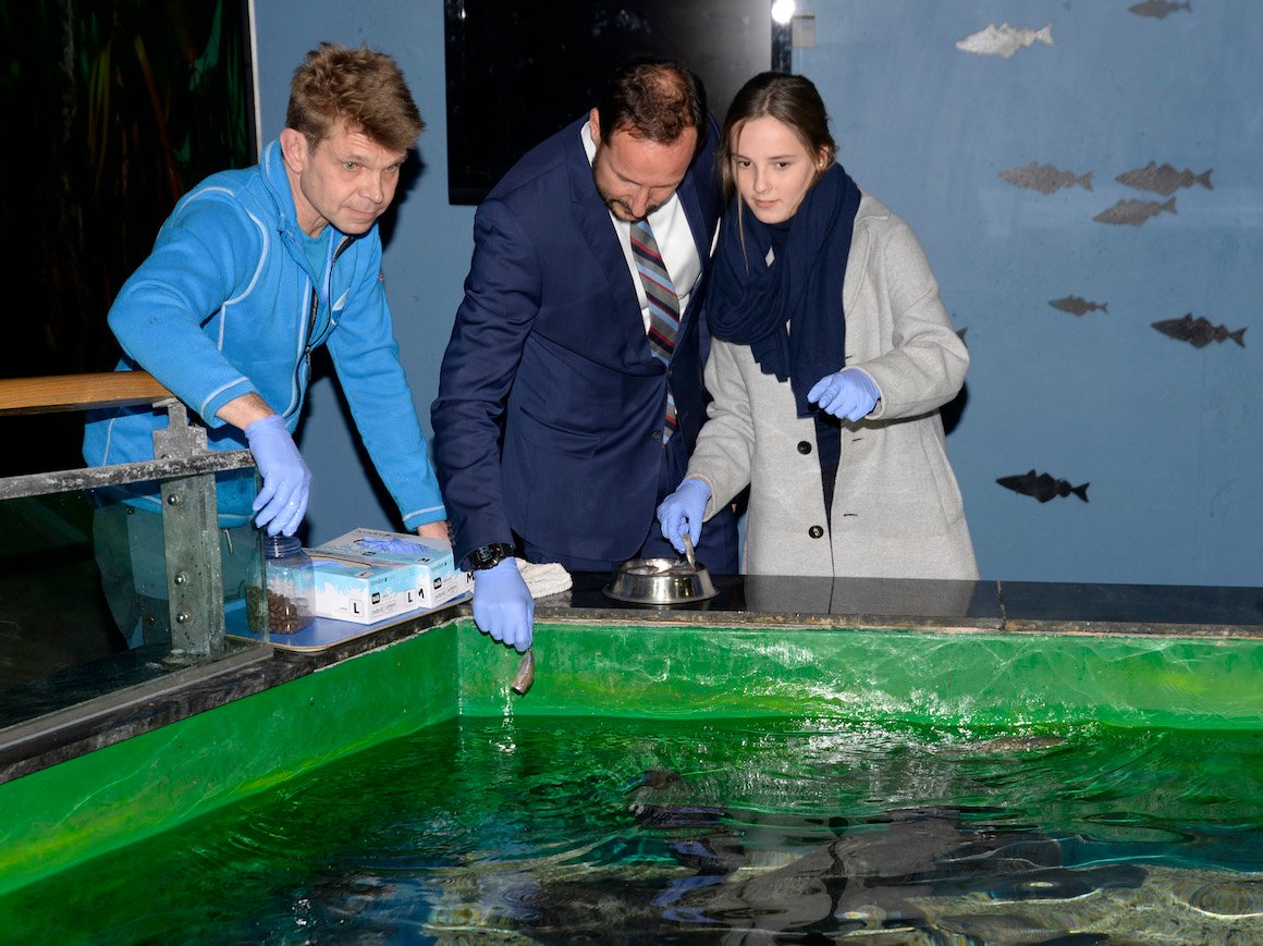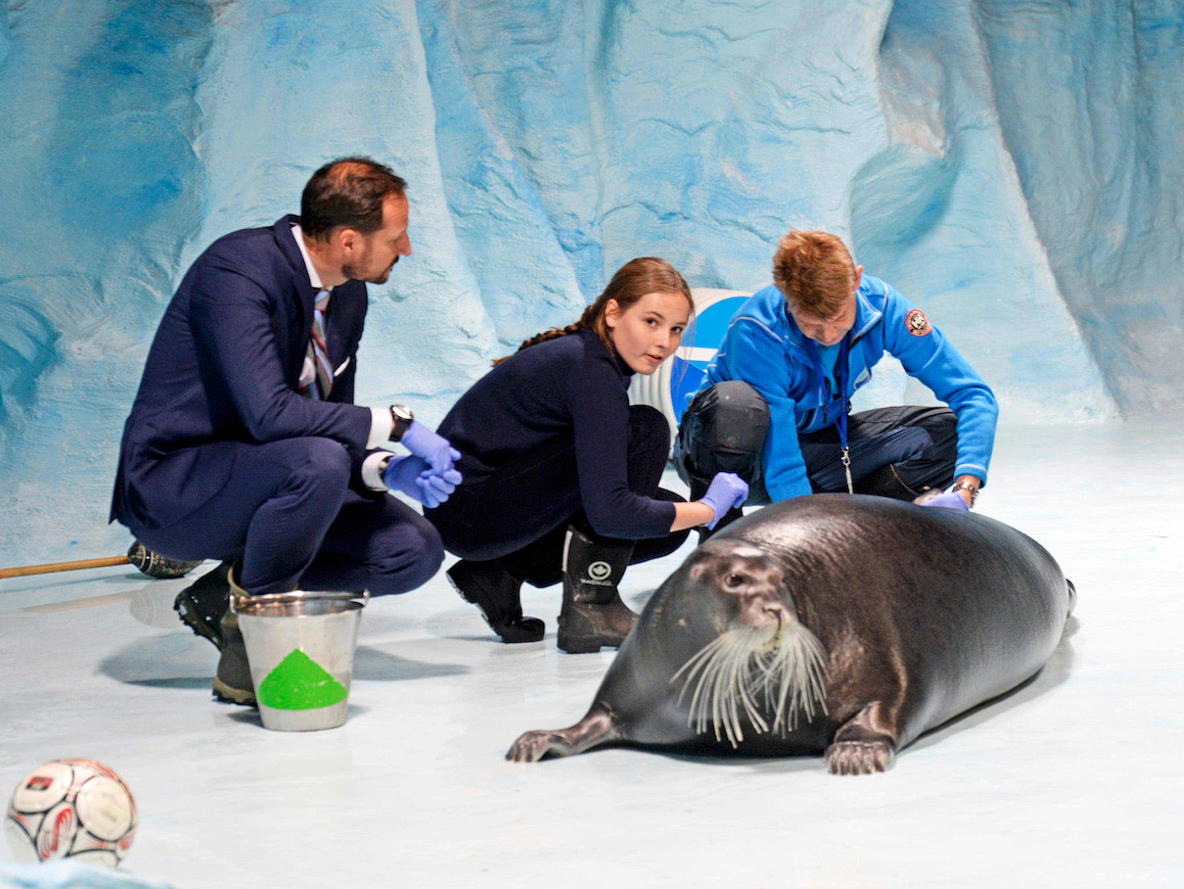 Opplevelsessenteret Polaria har akvarier med sel, fisk og sjødyr fra arktiske områder. Prinsesse Ingrid Alexandra fikk mate både steinbit og sel.