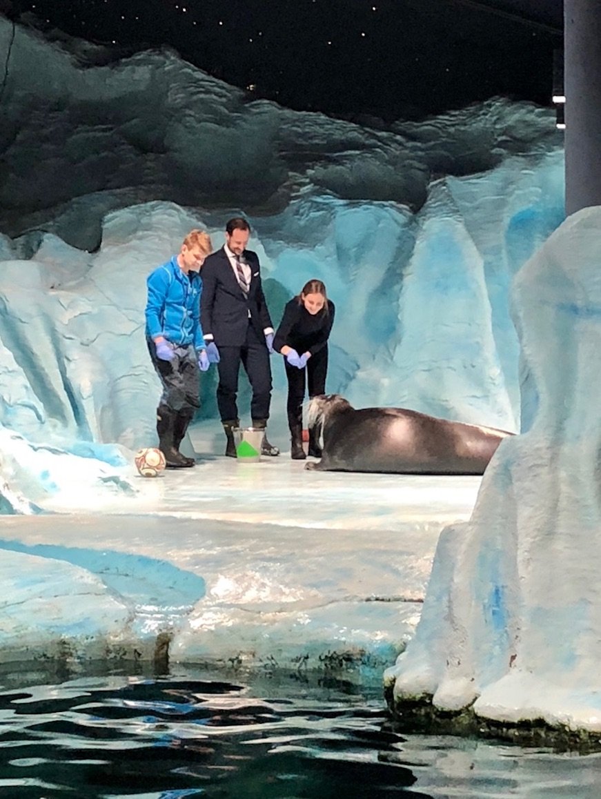 Deres Kongelige Høyheter Kronprins Haakon og Prinsesse Ingrid Alexandra avla akvariet Polaria et besøk etter dagens skipsdåp. Senteret formidler forskningsbasert kunnskap om Arktis.