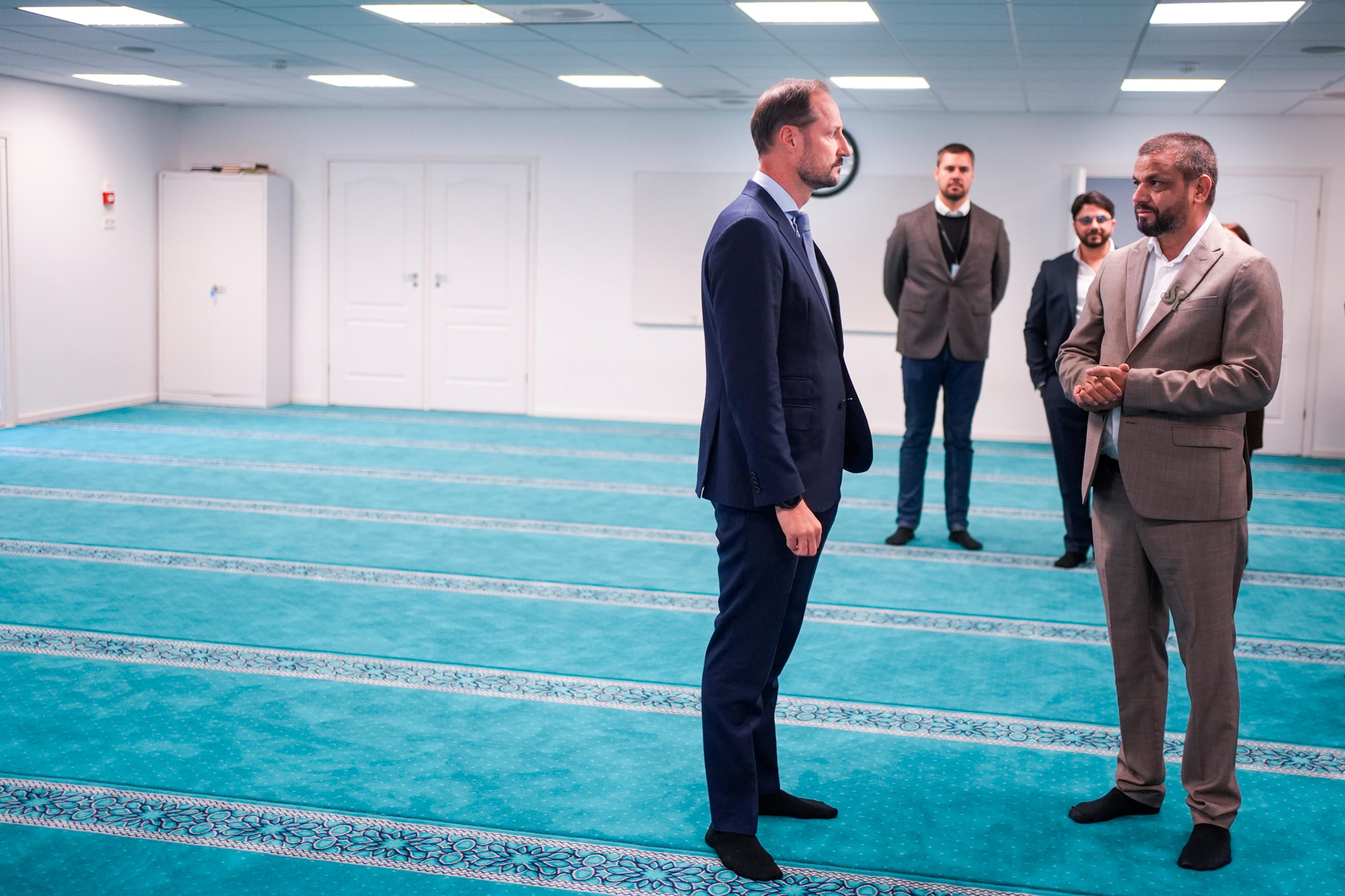 Under besøket fikk Kronprinsregenten en omvisning i moskeen. I bønnerommet fikk han høre mer om hvordan Al-Noor Islamic Centre og Stiftelsen 10. august samarbeider tett for å spre kunnskap, dele historien og forebygge utenforskap og ekstremisme.