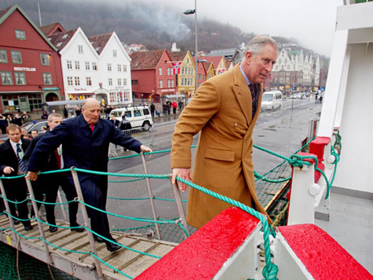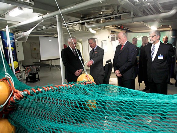 Kong Harald og Prins Charles startet programmet i Bergen med et besøk til forskningsskipet Brennholm. Prins Charles har engasjert seg for et bærekraftig fiske, og om bord på Brennholm fikk Kongen og Prinsen en innføring i blant annet bestandsvurdering, statistikksamarbeid på tvers av landegrenser, og den norske modellen for samarbeid mellom forskning, forvaltning og fiskeri. Det ble også demonstrert utstyr utviklet for bærekraftig fiske med not og trål, for eksempel gjennom mindre bunnkontakt og reduksjon av bifangst.