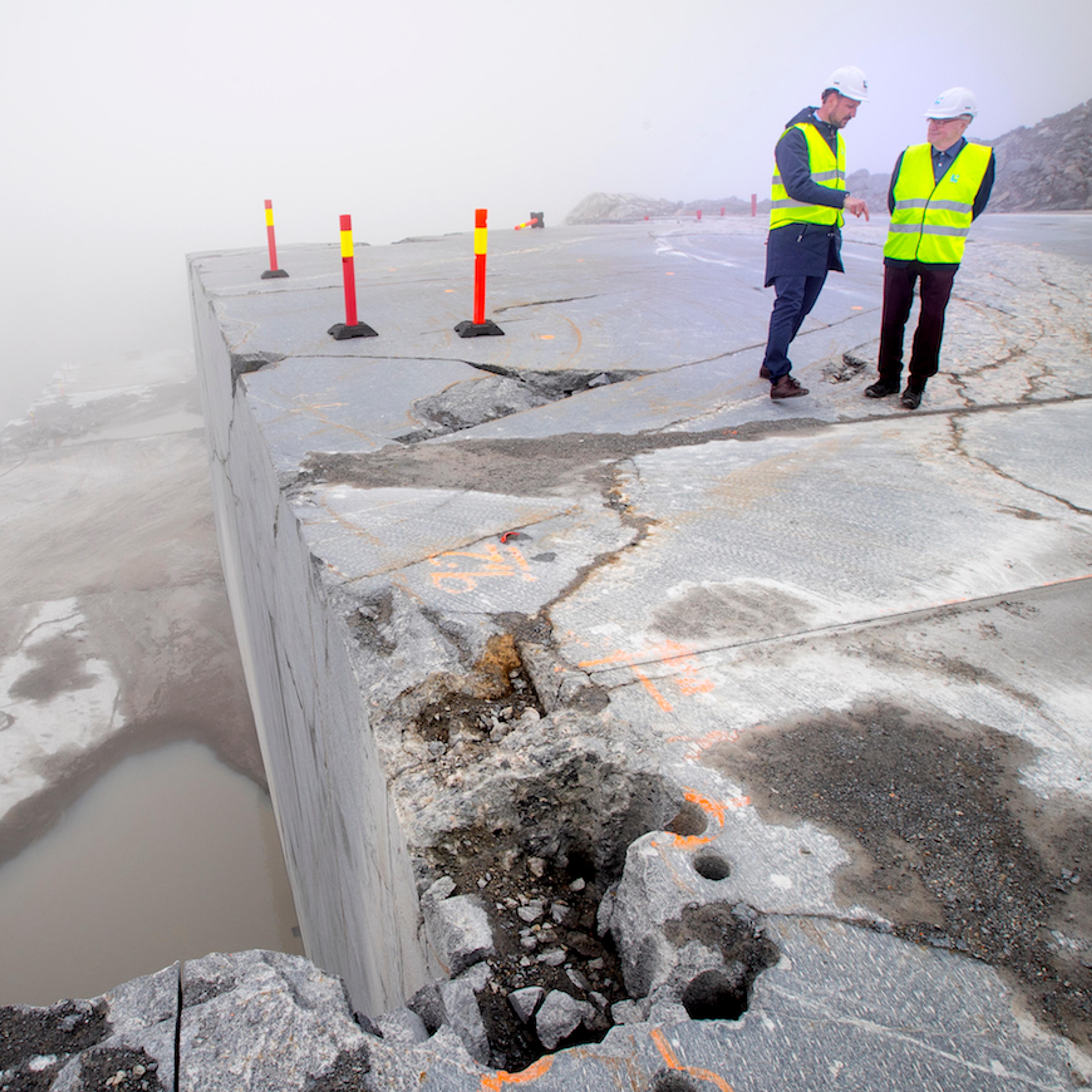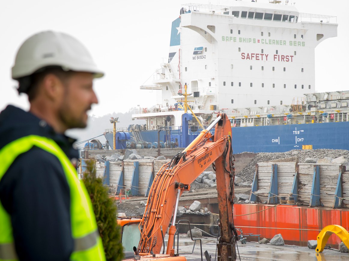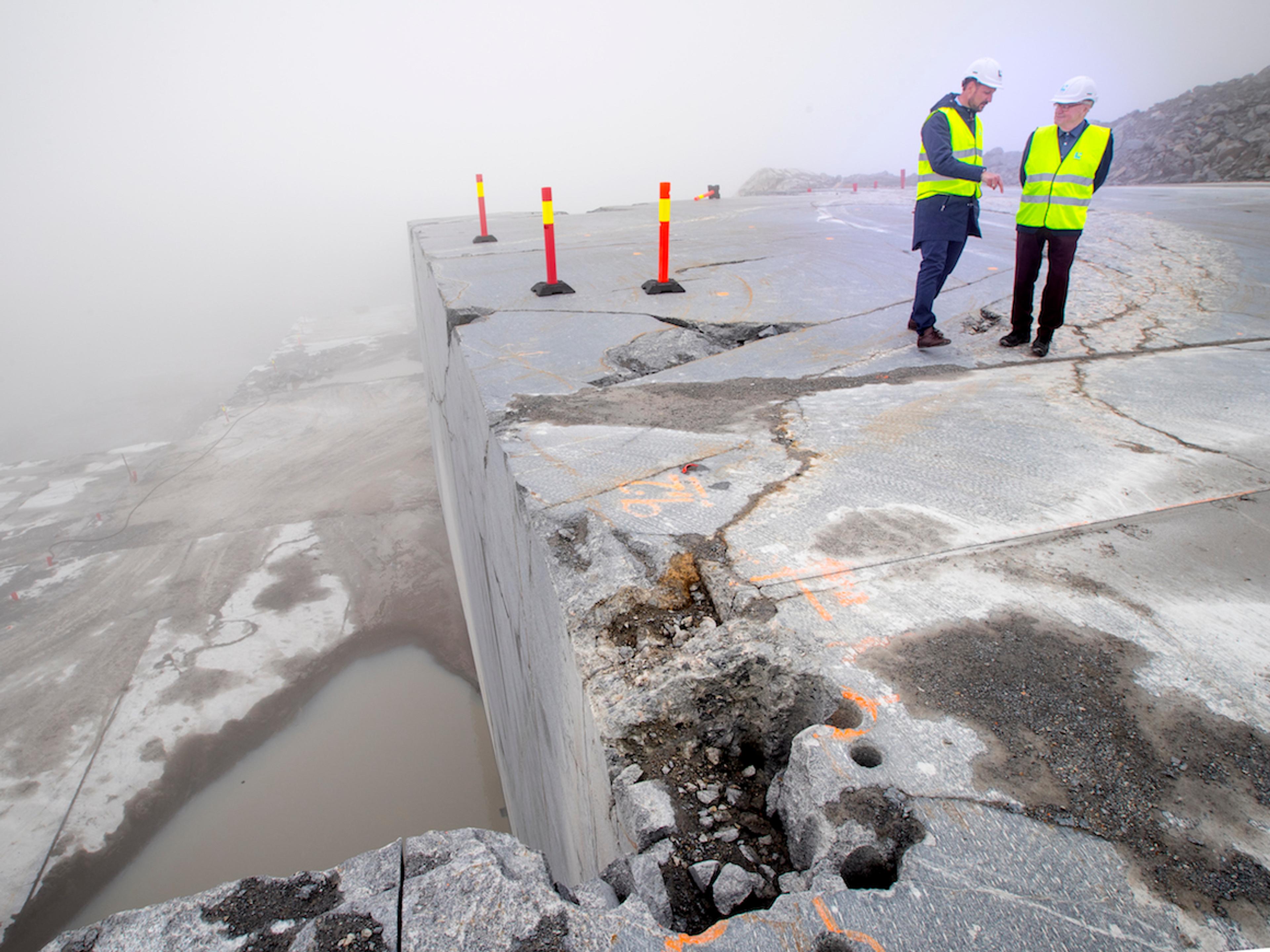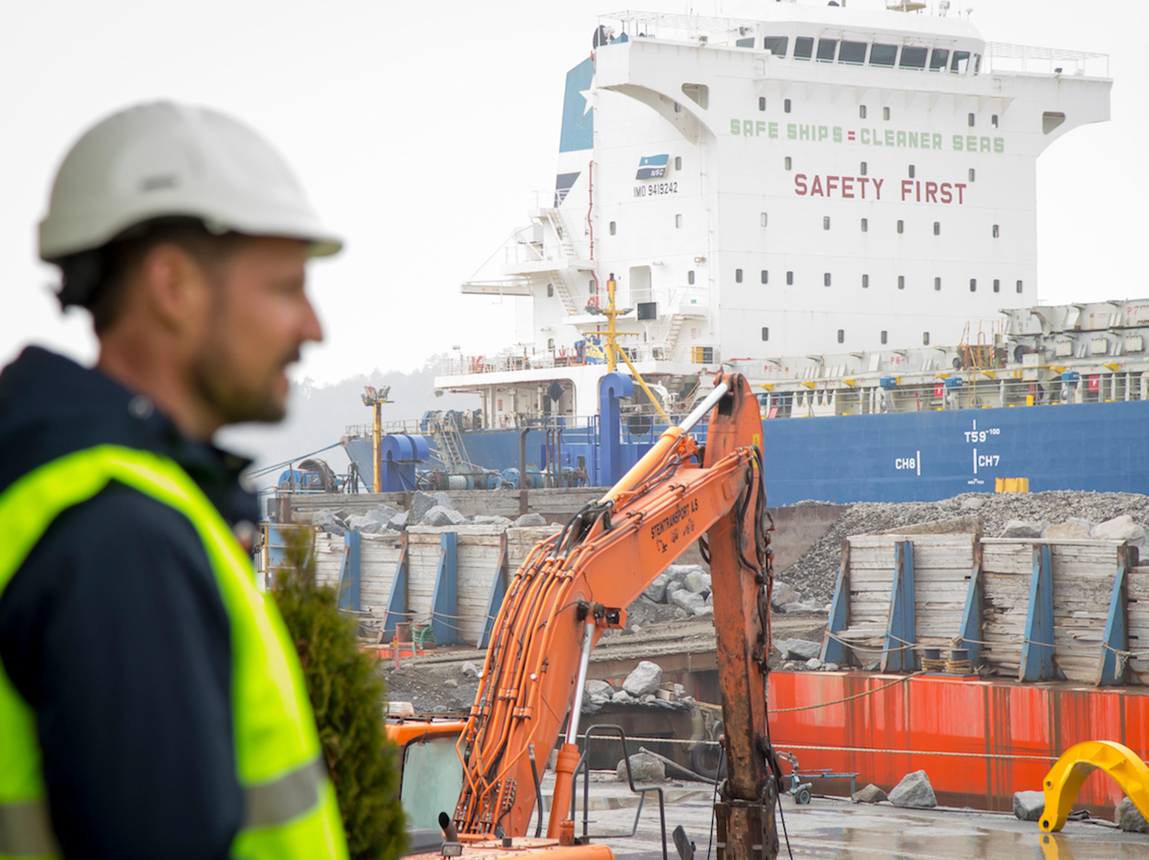 Steinbruddet er et imponerende skue. Kronprinsen fikk en omvisning i bruddet og et besøk i Svartbukt, som er en utskipningshavn for restmaterialer.