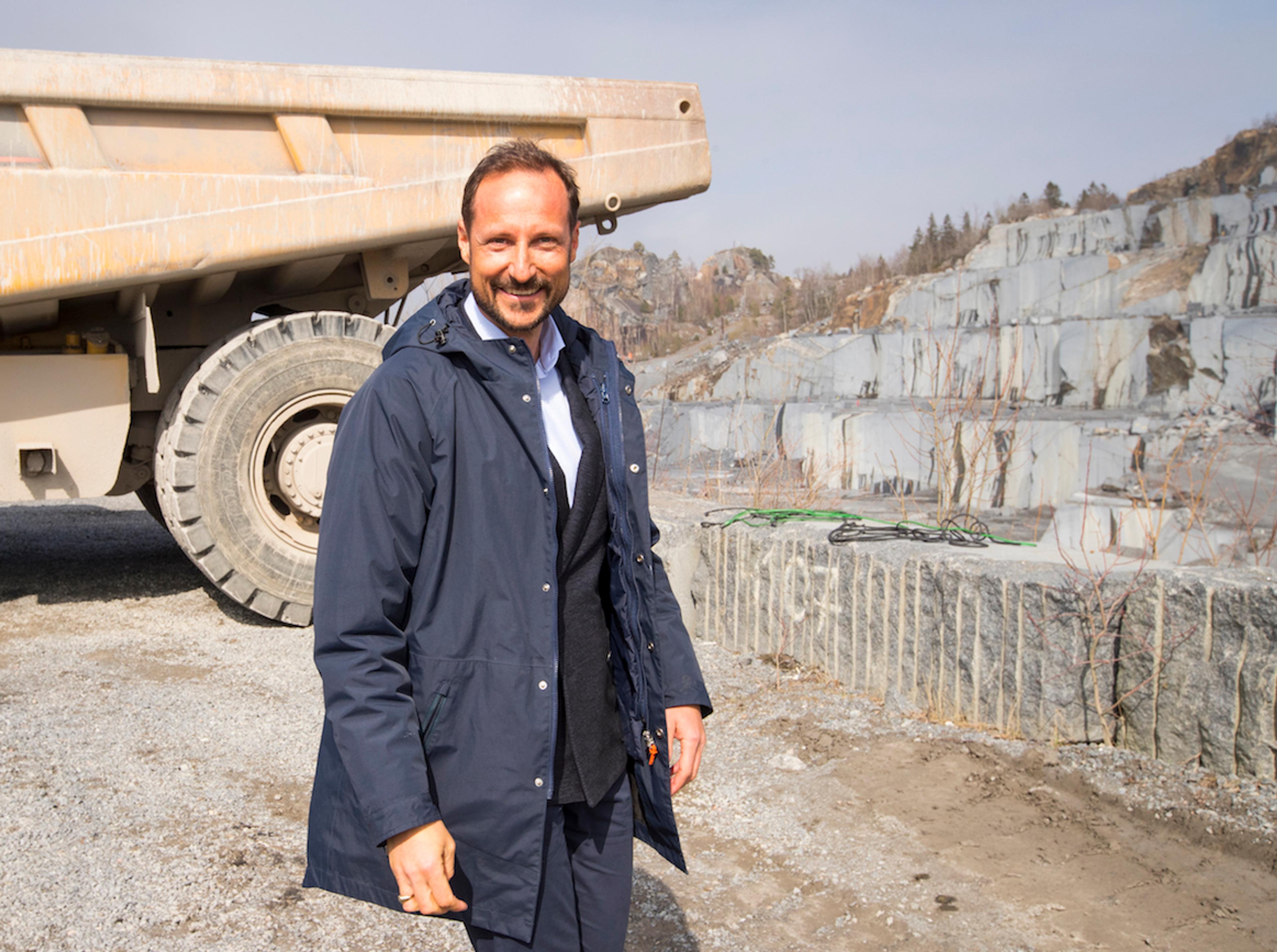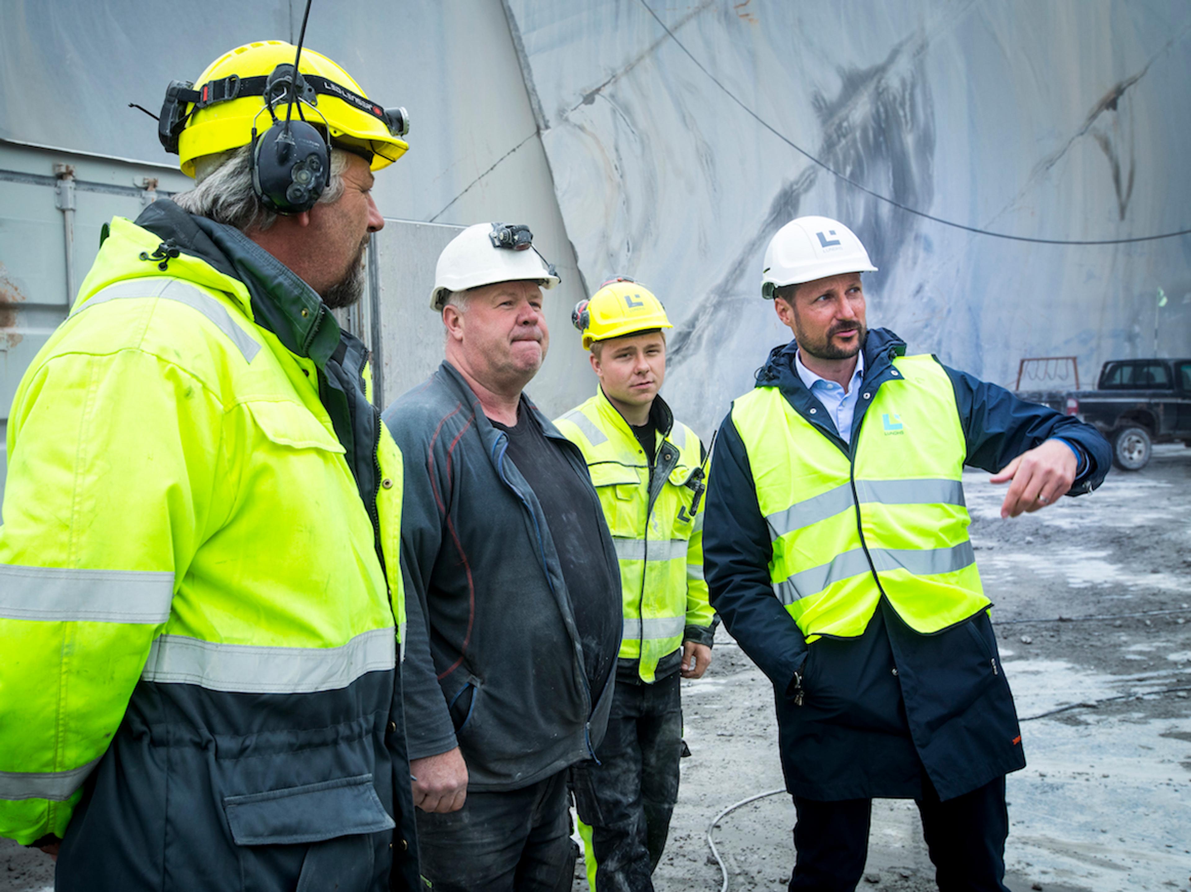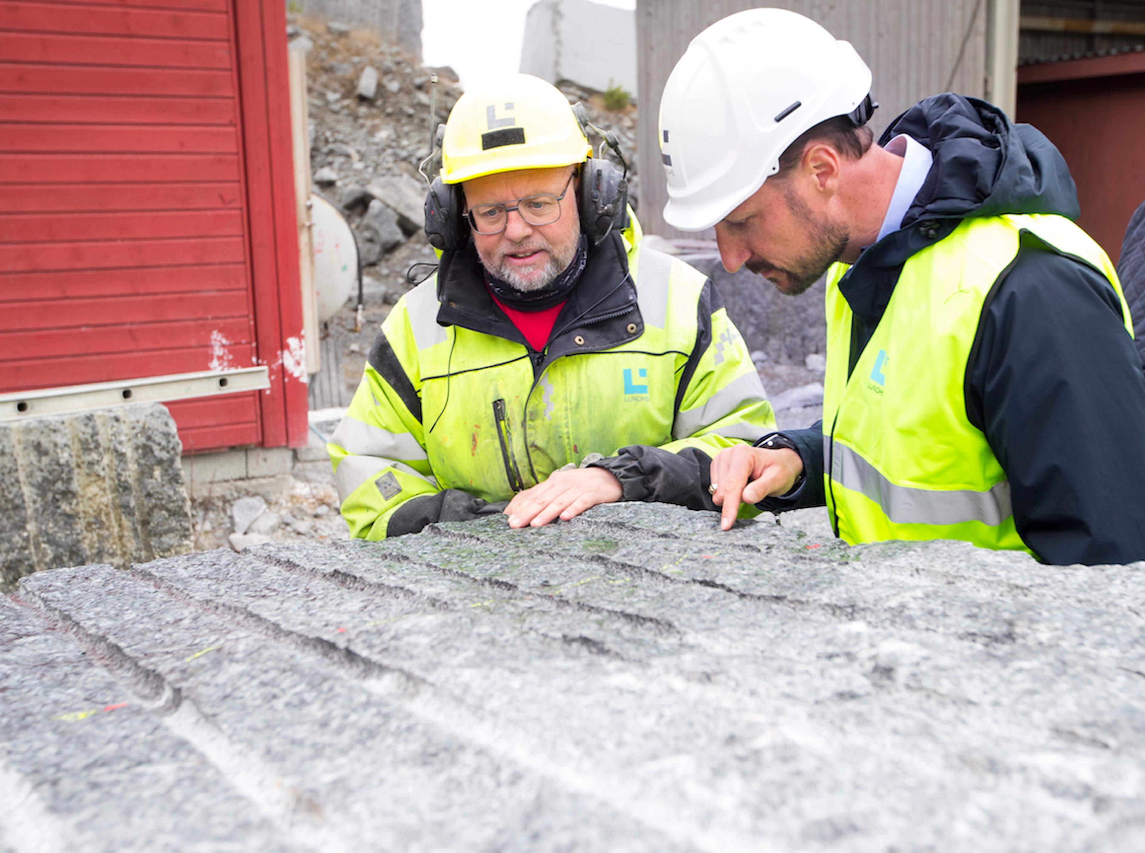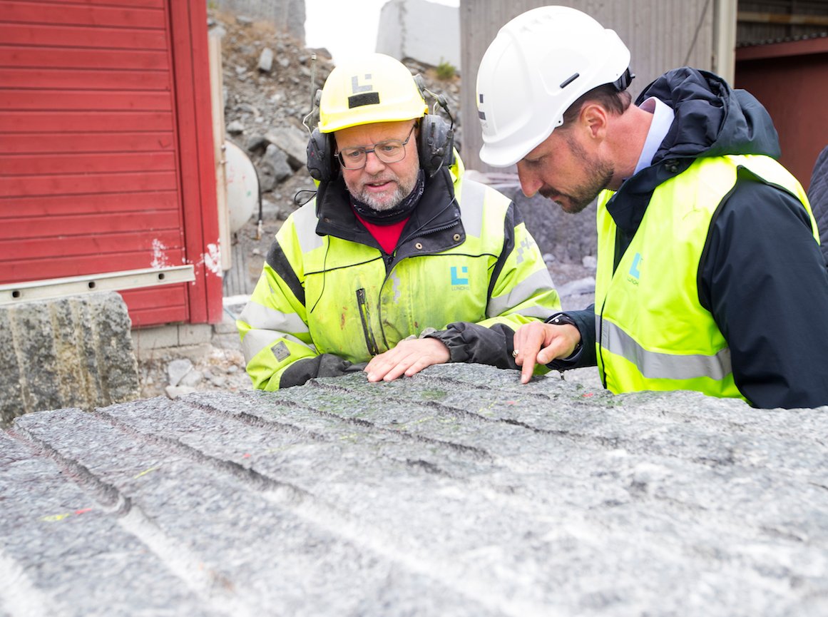 Hans Kongelige Høyhet Kronprins Haakon besøkte i dag Freste Pukkverk i Tønsberg og Lundhs steinbrudd i Tveidalen i Larvik. Der utvinner de nasjonalbergarten larvikitt.