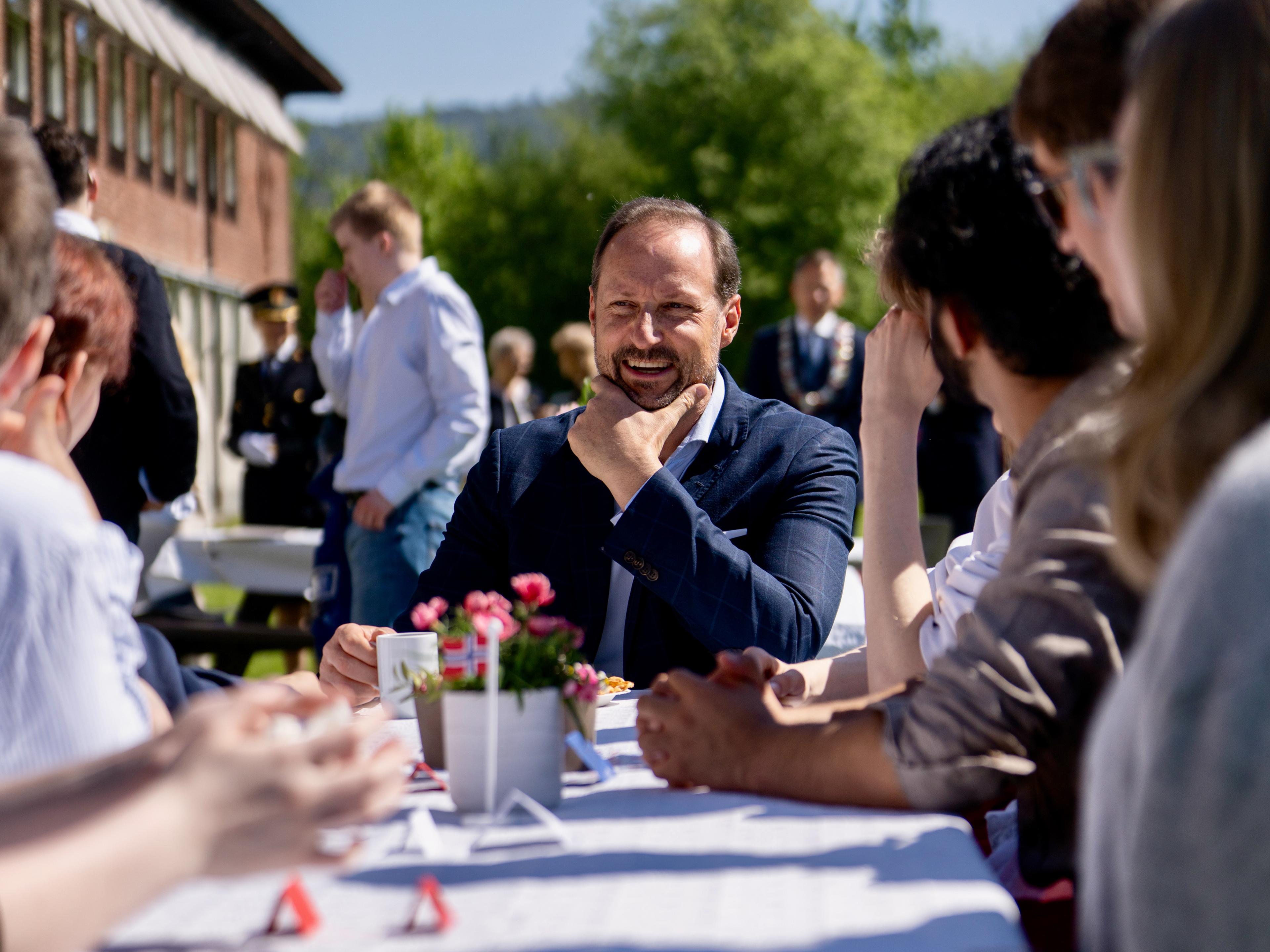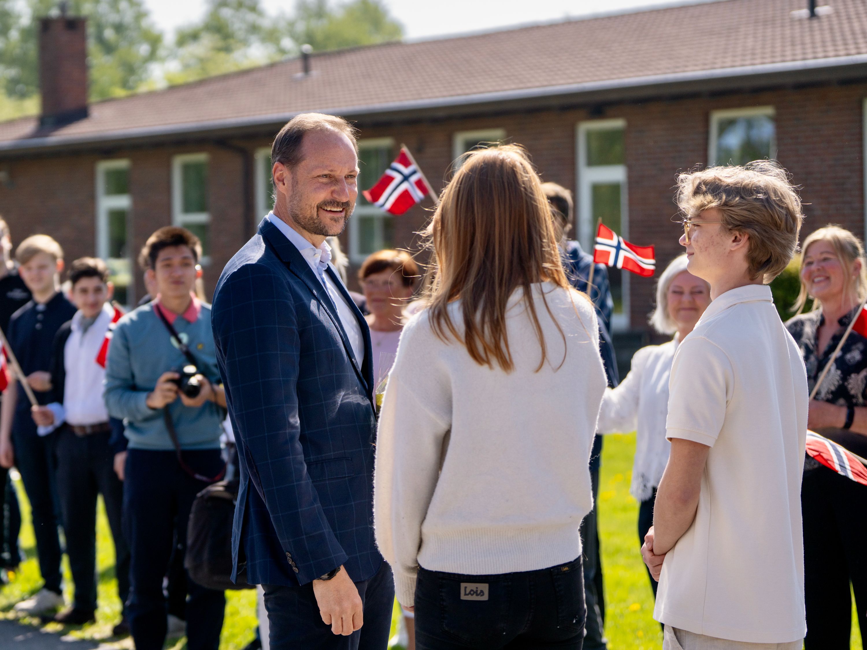 Under besøket møtte Kronprinsen skuleelevar og fekk ei omvising i klasserom, hybelhus og elevane si garasje, der dei har høve til å skru på bilar og mopedar på fritida. Besøket vart avslutta med nysteikte vaflar og mingling med elevane ute – i strålande sol.