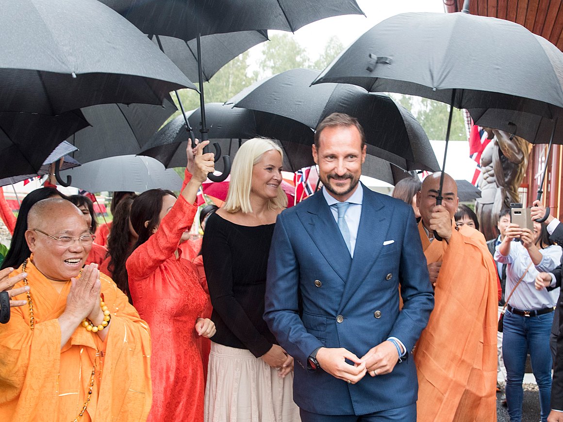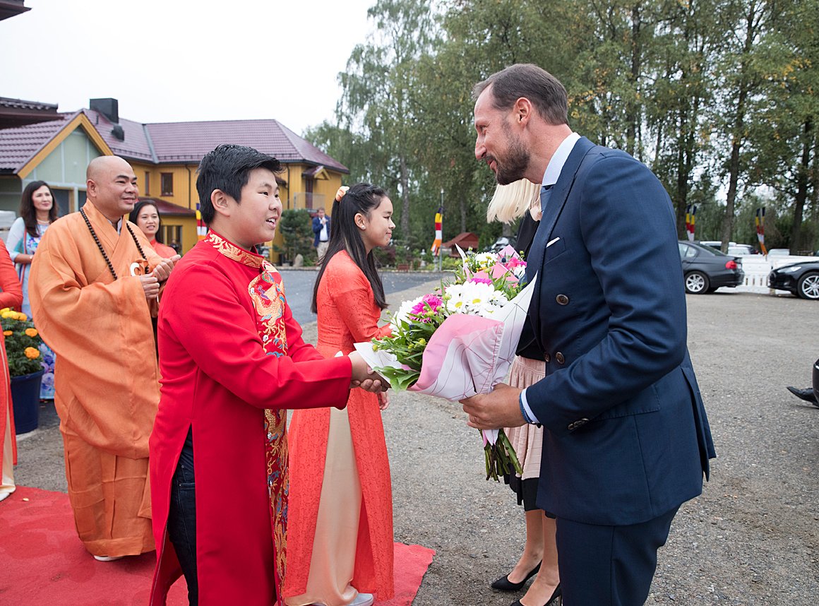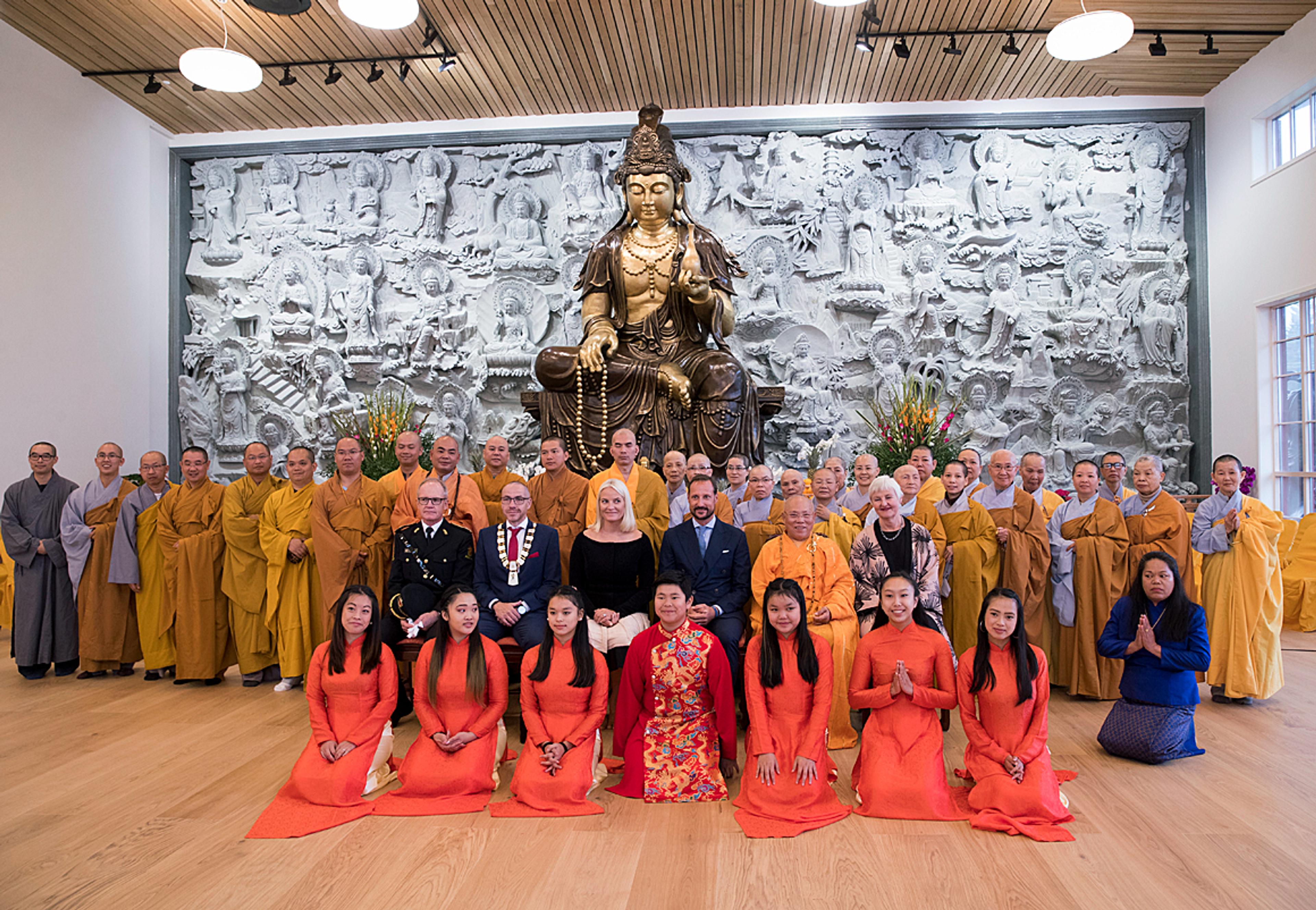 Kronprinsparet deltok i en teseremoni og ble invitert inn i den nye, storslagne Quan Âm-hallen da de besøkte det vietnamesiske buddhistsamfunnet på Jessheim i Akershus i dag.